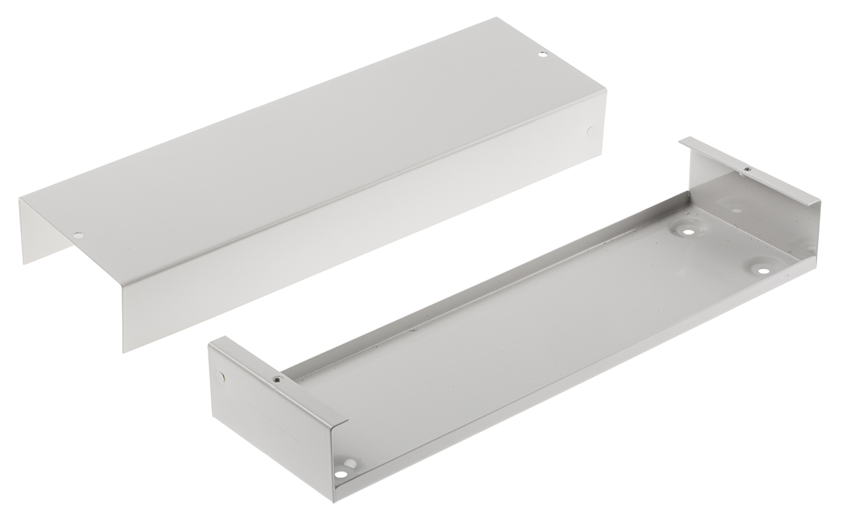 This is Steel Project Box Grey 330 x 100 x 45mm manufactured by RS Pro. The manufacturer part number is 232-119. The product complies with all safety standards, such as rohs. It has a carrying handle included no . It has a decent grey colour. It is ventilated no . Its external length includes 330 mm. The product's body is nicely designed from cold rolled steel materials. Features 330 x 100 x 45mm external caliber. While its external height is 45 mm. The product is 100 mm wide.