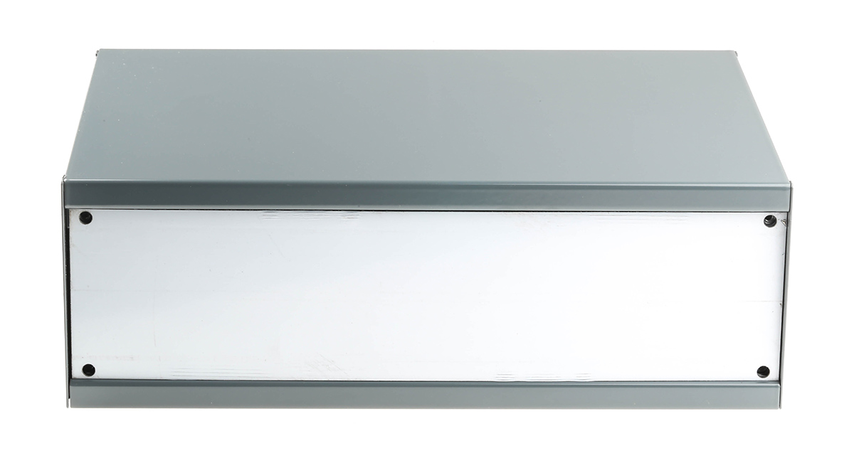 This is Aluminium & Steel Project Box Grey 300 x 200 x 100mm manufactured by RS Pro. The manufacturer part number is 232-276. The product complies with all safety standards, such as rohs. It has a carrying handle included no . It has a decent grey colour. It is ventilated no . Its external length includes 300 mm. The product's body is nicely designed from cold rolled steel materials. Features 300 x 200 x 100mm external caliber. While its external height is 100 mm. The product is 200 mm wide.