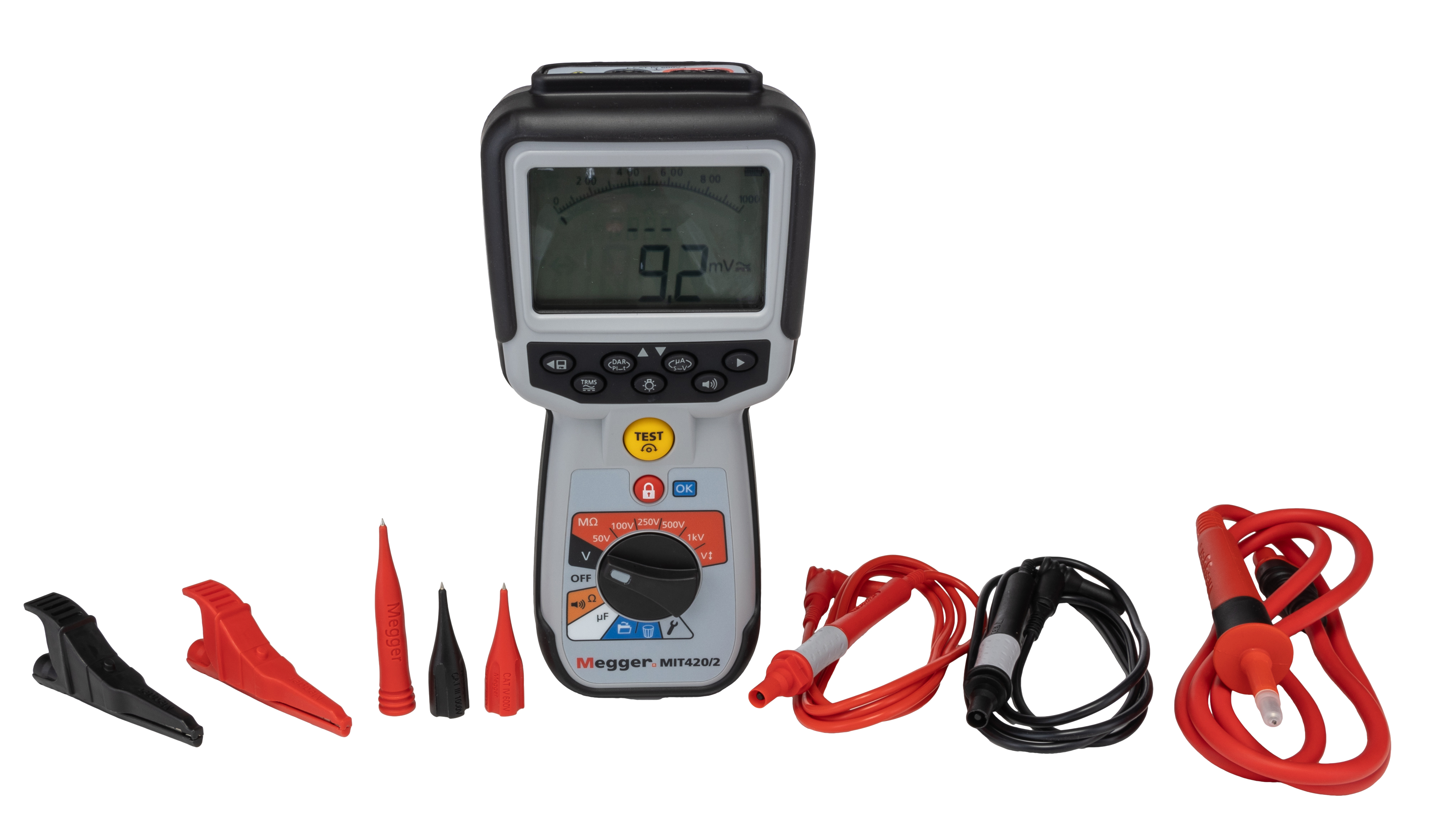 This is MIT420 2 Insulation Tester 200GΩ CAT IV 600 V UKAS Calibration manufactured by Megger. The manufacturer part number is 1004-739. Additionally, it includes a/an insulation tester type tester . Moreover, the product gets power from battery. The typical product's weight is 775g. Moreover, its safety category level is cat iv . Its safety category voltage is 600v . It has a model number mit420 2. In addition, the height is 220mm. Furthermore, the product is 50 mm wide. Its accurate length is 92mm. Whereas, the minimum operating temperature of the product is -20°c. It has a maximum 1000v test voltage . This alkaline battery is comparatively much efficient than common batteries. It has a minimum 10v test voltage . insulation tester is a versatile product designed to provide user-defined applications. It has a maximum operating temperature of 55°c. In addition, it has 205ma test current.