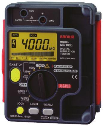 This is Insulation Tester 4000MΩ CAT III 600 V manufactured by Sanwa Electric Instruments. The manufacturer part number is MG1000. Additionally, it includes a/an insulation resistance tester type tester . It features a remarkable lcd display. The given dimensions of the product include 170 x 142 x 57mm. The typical product's weight is 600g. It provides robust safety and is complied with cat iii 600 v safety category. Moreover, its safety category level is cat iii . Its safety category voltage is 600v . While it has mg1000 of model number. It has a maximum 4000mω insulation resistance measurement . In addition, the height is 57mm. Furthermore, the product is 142mm wide. Its accurate length is 170mm. Whereas, the minimum operating temperature of the product is 0°c. It has a maximum 1000v test voltage . This aa battery is comparatively much efficient than common batteries. It has a minimum 250v test voltage . It has a maximum operating temperature of +40°c. Moreover, the product gets power from battery. In addition, it has 1 → 1.2ma test current.