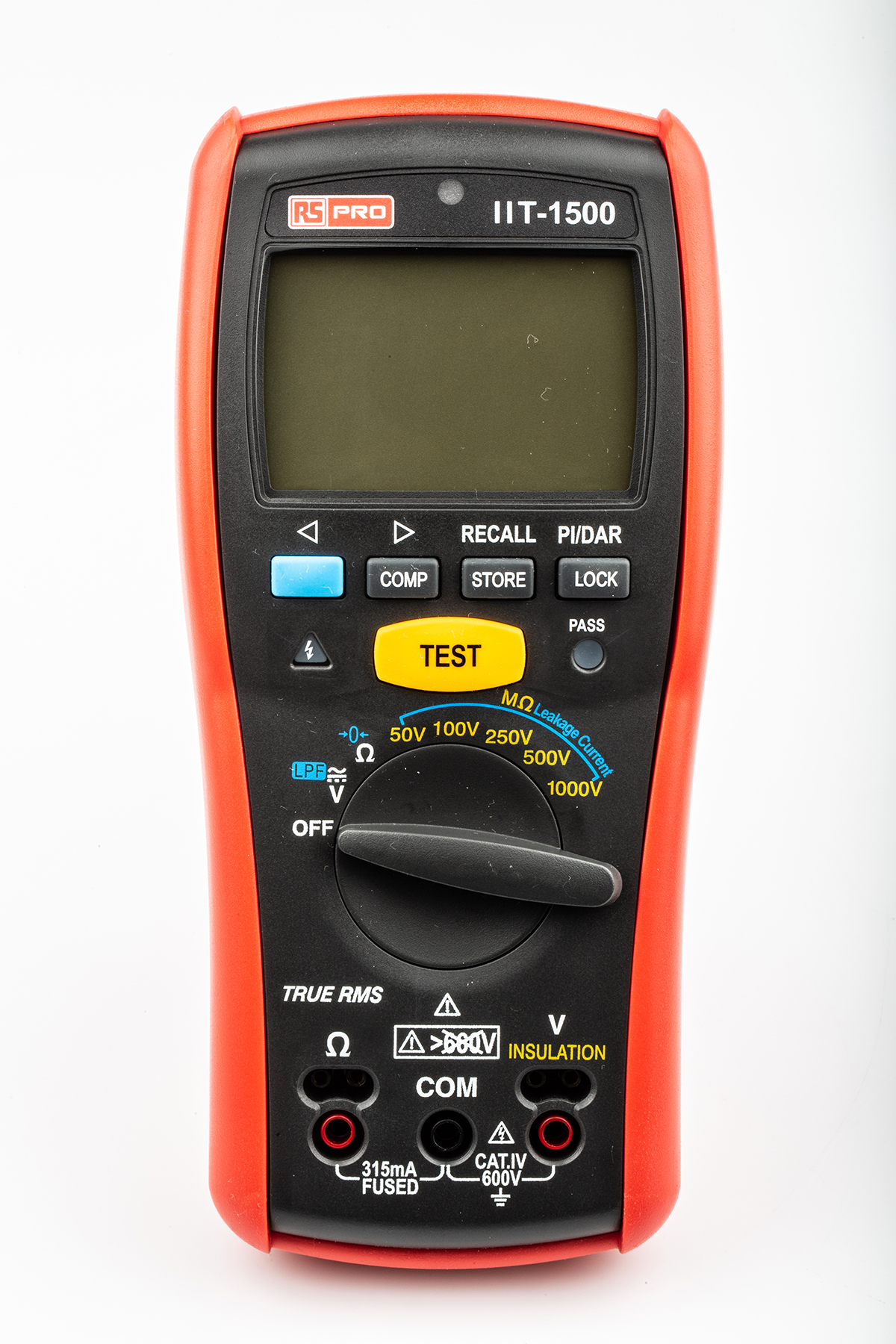 This is IIT1500 Insulation Tester 20GΩ CAT IV 600 V UKAS Calibration manufactured by RS PRO. The manufacturer part number is 123-3387. Additionally, it includes a/an insulation tester type tester . It features a remarkable lcd backlight display. Moreover, the product gets power from battery. The typical product's weight is 630g. Moreover, its safety category level is cat iv . Its safety category voltage is 600v . It has a model number iit1500. In addition, the height is 200mm. Furthermore, the product is 51.2 mm wide. Its accurate length is 95mm. It is calibrated ukas . Whereas, the minimum operating temperature of the product is 0°c. It has a maximum 1000v test voltage . This alkaline battery is comparatively much efficient than common batteries. It has a minimum 50v test voltage . insulation tester is a versatile product designed to provide user-defined applications. It has a maximum operating temperature of 50°c. In addition, it has 1ma test current.