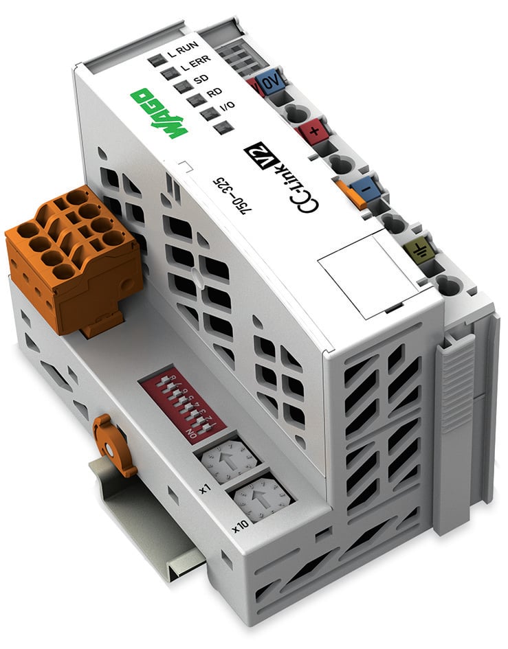 This is Ethernet Interface Adapter manufactured by WAGO. The manufacturer part number is 750-325. It includes a ethernet type bus .