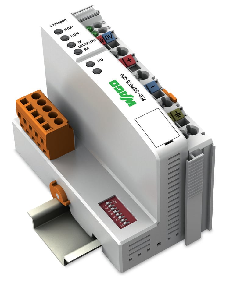 This is CANbus Interface Adapter manufactured by WAGO. The manufacturer part number is 750-337/025-000. It includes a canbus type bus .