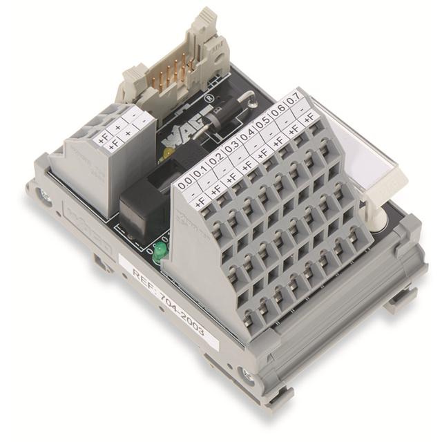 This is manufactured by WAGO Corporation. The manufacturer part number is 704-2003. It is assigned with possible HTSUS value of 8536.90.4000. The product is rohs non-compliant. Furthermore, the product is 2.205" (56.00mm) wide. The product has -20°c ~ 50°c operating temperature range. Control Side Connection - rectangular, male - din 41651. It has 2 a per contact. It constitutes latches of control side cable retainer. It also exhibits voltage rating of 24vdc. It is shipped in box package . Moreover, the product has a wire gauge of 12-28 awg. The process side connection includes terminal blocks - screw connection. Its typical moisture sensitivity level is not applicable. It has a long 12 weeks standard lead time. The splendid features of the product include led. It contains 10 positions or poles. The product is designated with the ear99 code number.