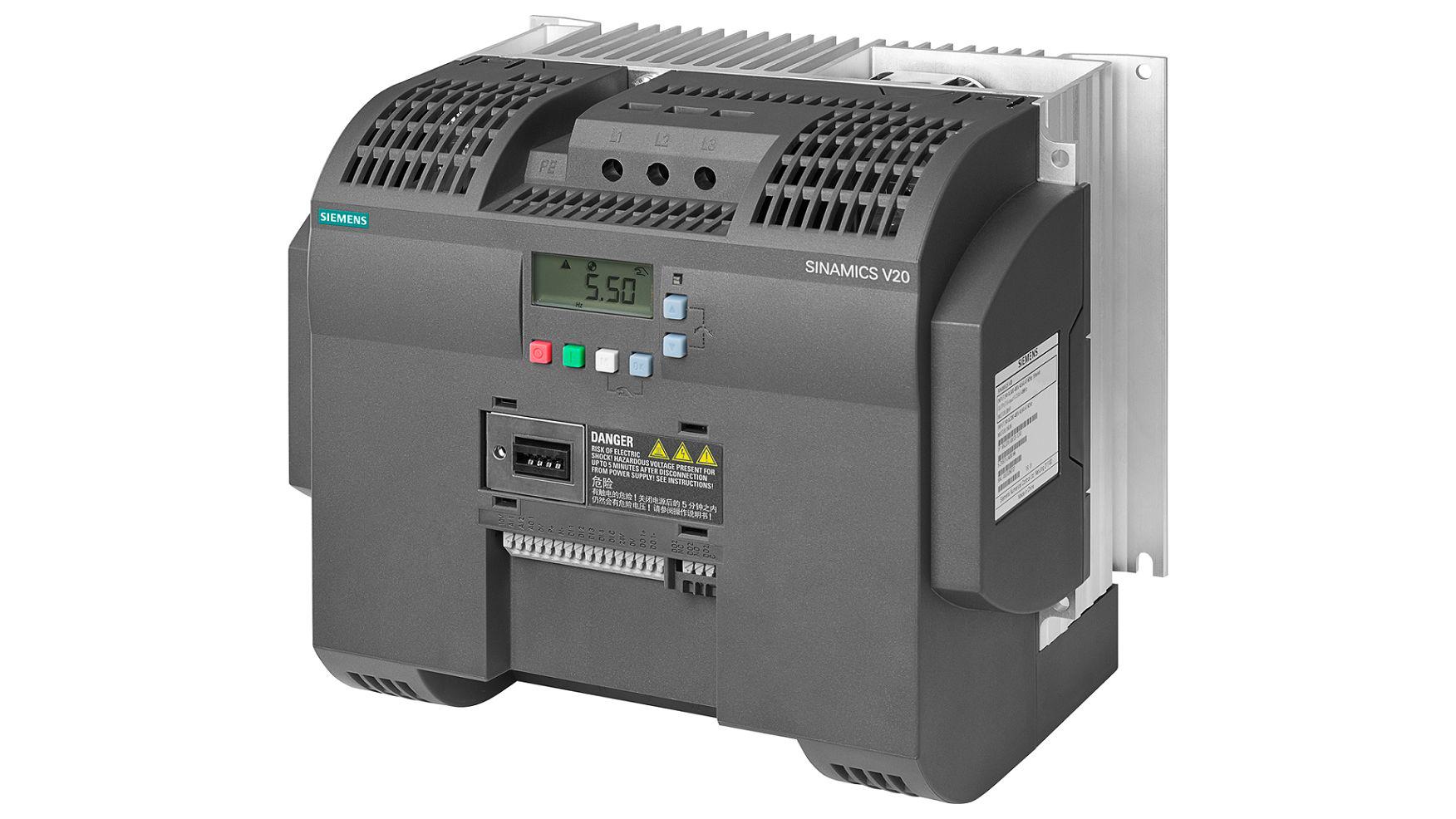 This is SINAMICS V20 Inverter Drive 15 kW 3-Phase In 380 → 480 V ac 0 → 550Hz Out ModBus RTU IP20 manufactured by Siemens. The manufacturer part number is 6SL3210-5BE31-5UV0. The product has a current rating of 31 a. The product is available in push through mount, side by side mount, wall mount configuration. It is IP rated with ip20. The product sinamics v20, is a highly preferred choice for users. It has an overall width of 207mm. In has an STO no . It includes a control panel yes . The product is highly suitable for ac motors. Features 400 v ac supply voltage. It has an overall length of 240mm. Concerning phase options, it features 3 configuration. Similarly, the product has 173mm of overall depth. Feature 15 kw of power rating. It has a/an modbus type bus communication . The product also provides special features, such as ip20 terminal protection. This product has an output frequency range of 0 → 550hz.