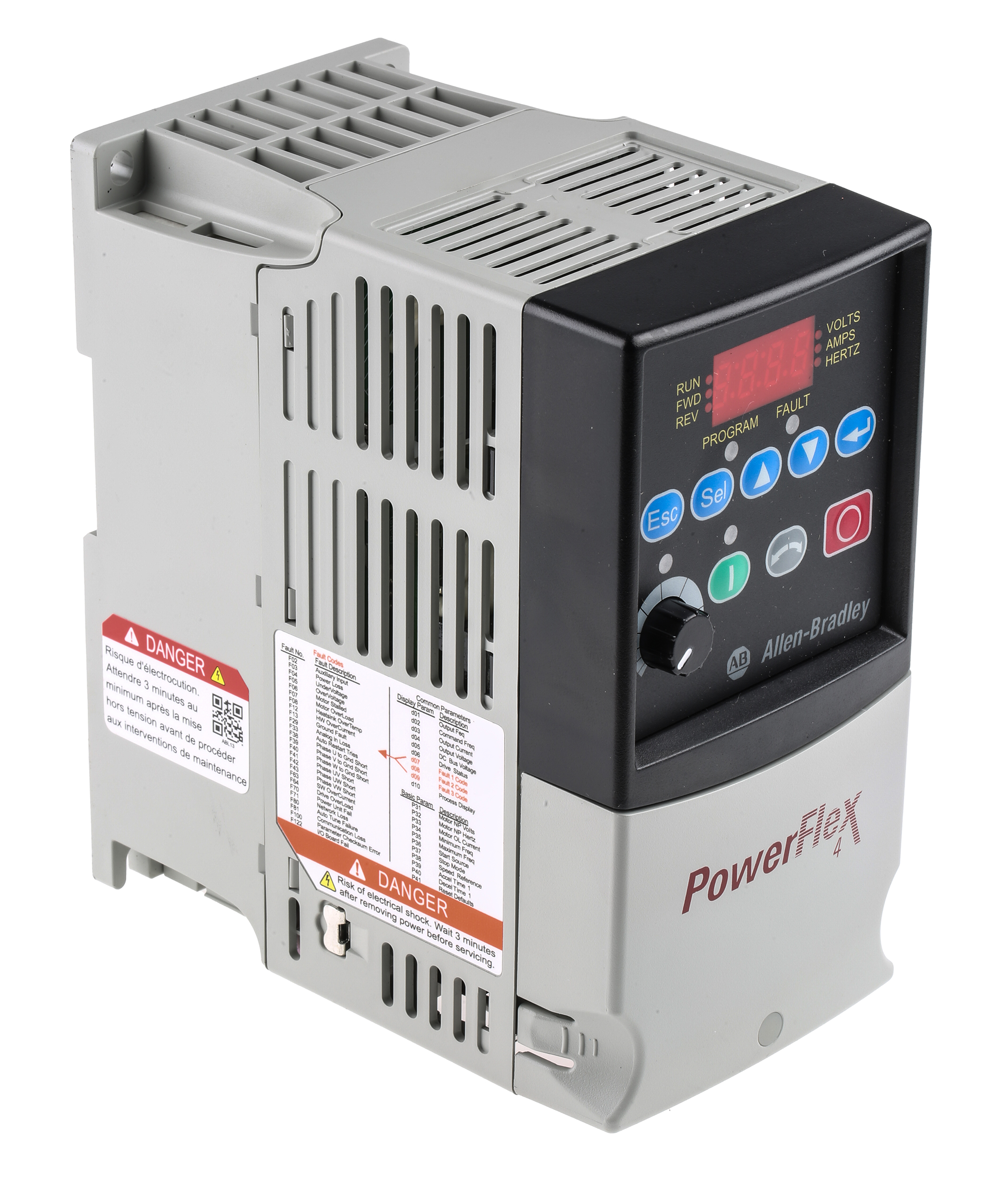 This is PowerFlex 4 Inverter Drive 0.4 kW with EMC Filter 1-Phase In 200 → 240 V ac 2.3 A 240Hz Out manufactured by Allen Bradley. The manufacturer part number is 22A-A2P3N114. The product has a current rating of 2.3 a. It is IP rated with ip20. The product powerflex 4, is a highly preferred choice for users. It has an overall width of 80mm. In has an STO no . It includes a filter yes . It includes a control panel yes . The product is highly suitable for ac motors. Features 230 v ac supply voltage. It has an overall length of 152mm. Concerning phase options, it features 1 configuration. Similarly, the product has 136mm of overall depth. Feature 0.4 kw of power rating. It has a/an modbus type bus communication . This product has an output frequency range of 240hz.