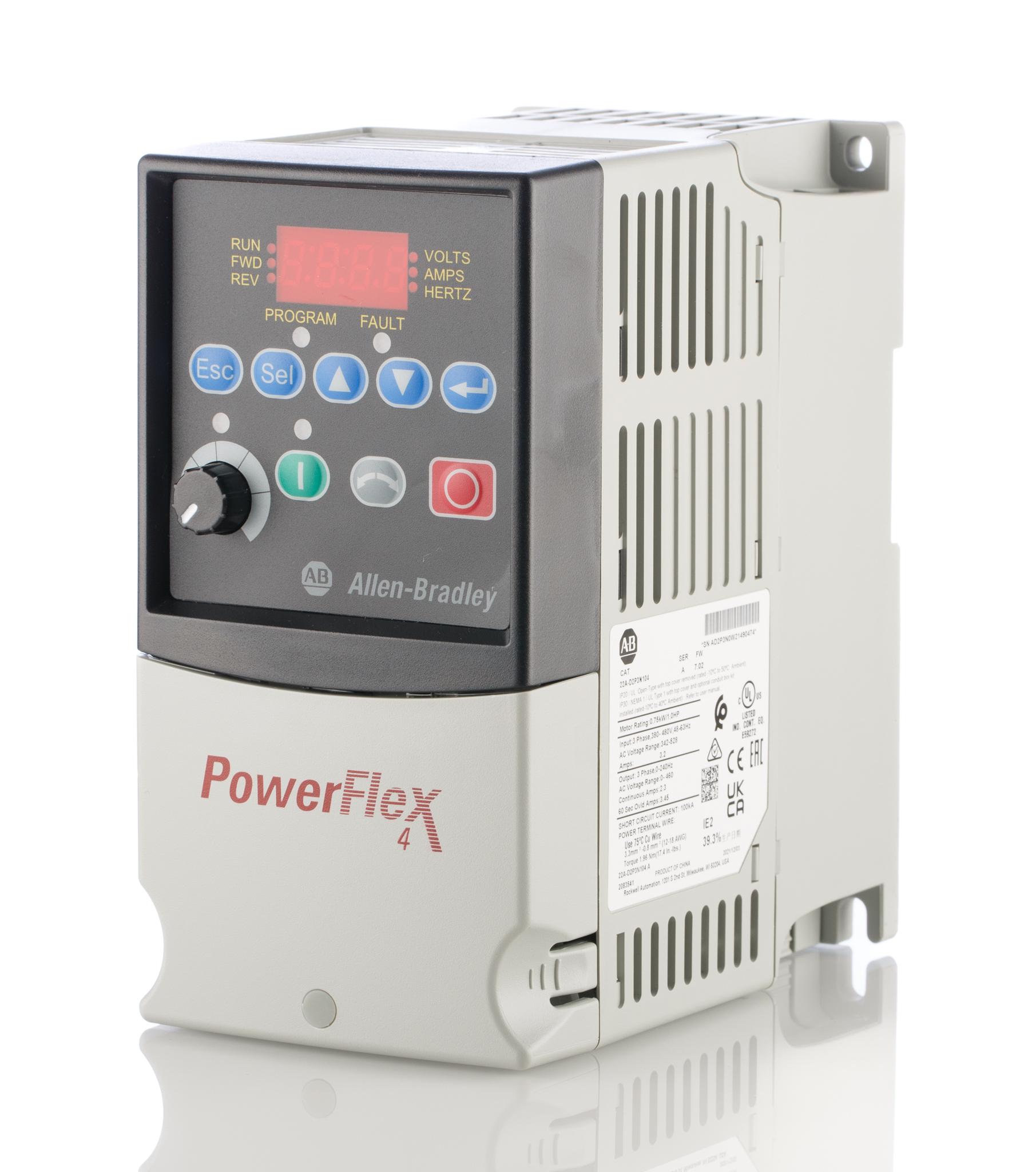 This is PowerFlex 4 Inverter Drive 0.75 kW 3-Phase In 380 → 480 V ac 2.3 A 240Hz Out ModBus IP20 manufactured by Allen Bradley. The manufacturer part number is 22A-D2P3N104. The product has a current rating of 2.3 a. It is IP rated with ip20. The product powerflex 4, is a highly preferred choice for users. It has an overall width of 80mm. In has an STO no . It includes a control panel yes . The product is highly suitable for ac motor, fans, pumps, conveyor. Features 400 v ac supply voltage. It has an overall length of 152mm. Concerning phase options, it features 3 configuration. Similarly, the product has 136mm of overall depth. Feature 0.75 kw of power rating. It has a/an modbus type bus communication . This product has an output frequency range of 240hz.