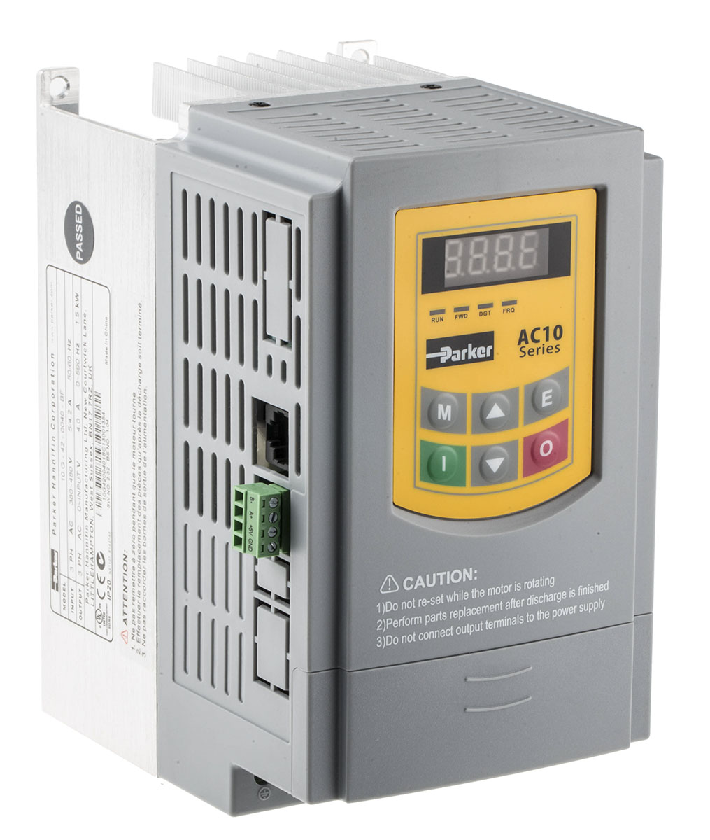 This is AC10 Inverter Drive 1.5 kW with EMC Filter 3-Phase In 400 V 6.9 A 0.5 → 650Hz Out RS485 ModBus IP20 manufactured by Parker. The manufacturer part number is 10G-42-0040-BF. The product has a current rating of 6.9 a. It is IP rated with ip20. The product ac10, is a highly preferred choice for users. It has an overall width of 150mm. In has an STO no . It includes a filter yes . It includes a control panel yes . The product is highly suitable for ac motors. Features 400 v ac supply voltage. It has an overall length of 106mm. Concerning phase options, it features 3 configuration. Similarly, the product has 180mm of overall depth. Feature 1.5 kw of power rating. It has a/an rs485 modbus type bus communication . This product has an output frequency range of 0.5 → 590hz.