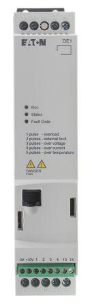 This is Variable Speed Starter DE11 0.75 kW with EMC Filter 60Hz Out 1 (Input) 3 (Output)-Phase In 230 V ac 4.3 A manufactured by Eaton. The manufacturer part number is DE11-124D3FN-N20N. The product has a current rating of 4.3 a. The product complies with all safety standards, such as ce, csa, culus, eac, ul. The product is available in din rail configuration. It is IP rated with ip20. The product de11, is a highly preferred choice for users. The product features a variable speed drive. The product also provides special features, such as enclosure protoction type is nema 0, no special drives engineering skills or knowledge required, out-of-the-box commissioning without parameterisation, short-circuit resistence. It includes a filter yes . Its typical ambient temperature is approximately +60°c . It includes a control panel yes . The product is highly suitable for 230 v three-phase motors, 400 v three-phase motors. Features 230 v ac supply voltage. It has an overall length of 230mm. Concerning phase options, it features 1 configuration. Similarly, the product has 168mm of overall depth. Feature 0.75 kw of power rating. It has a/an canopen type bus communication . It has an overall width of 45mm. This product has an output frequency range of 60hz.