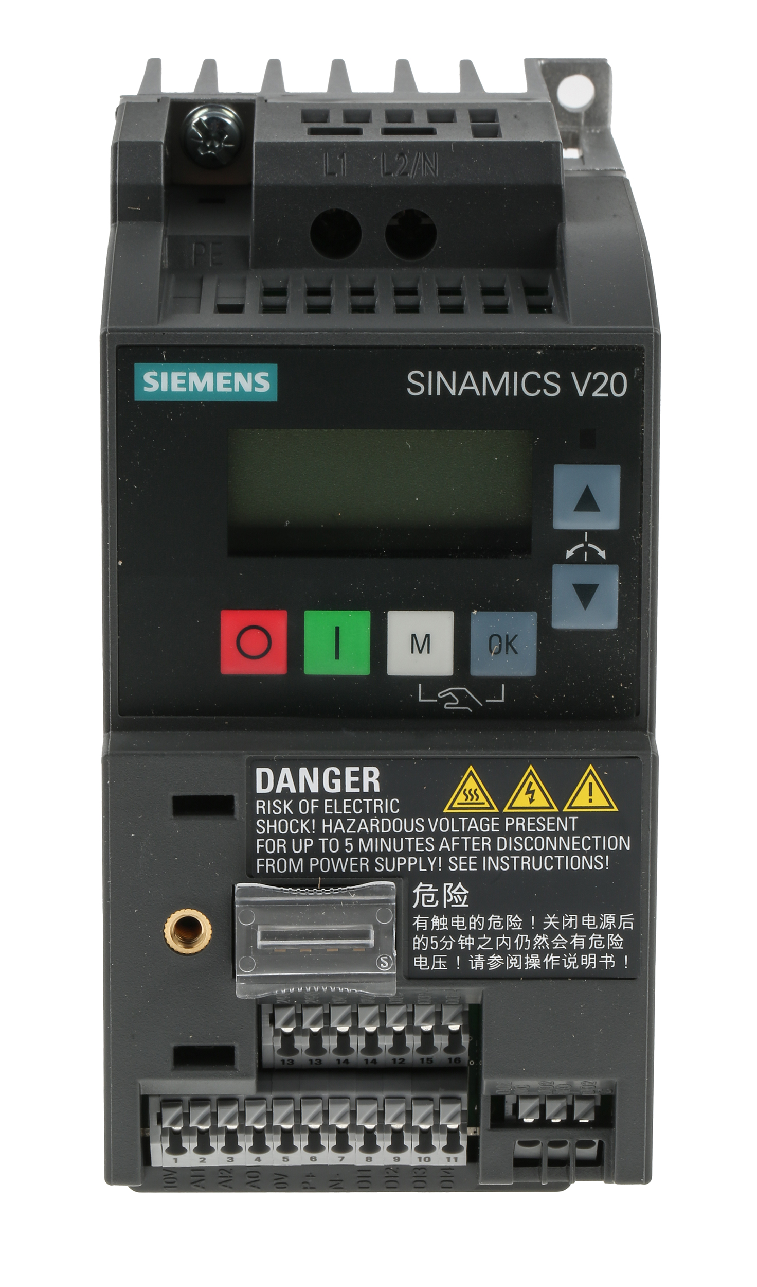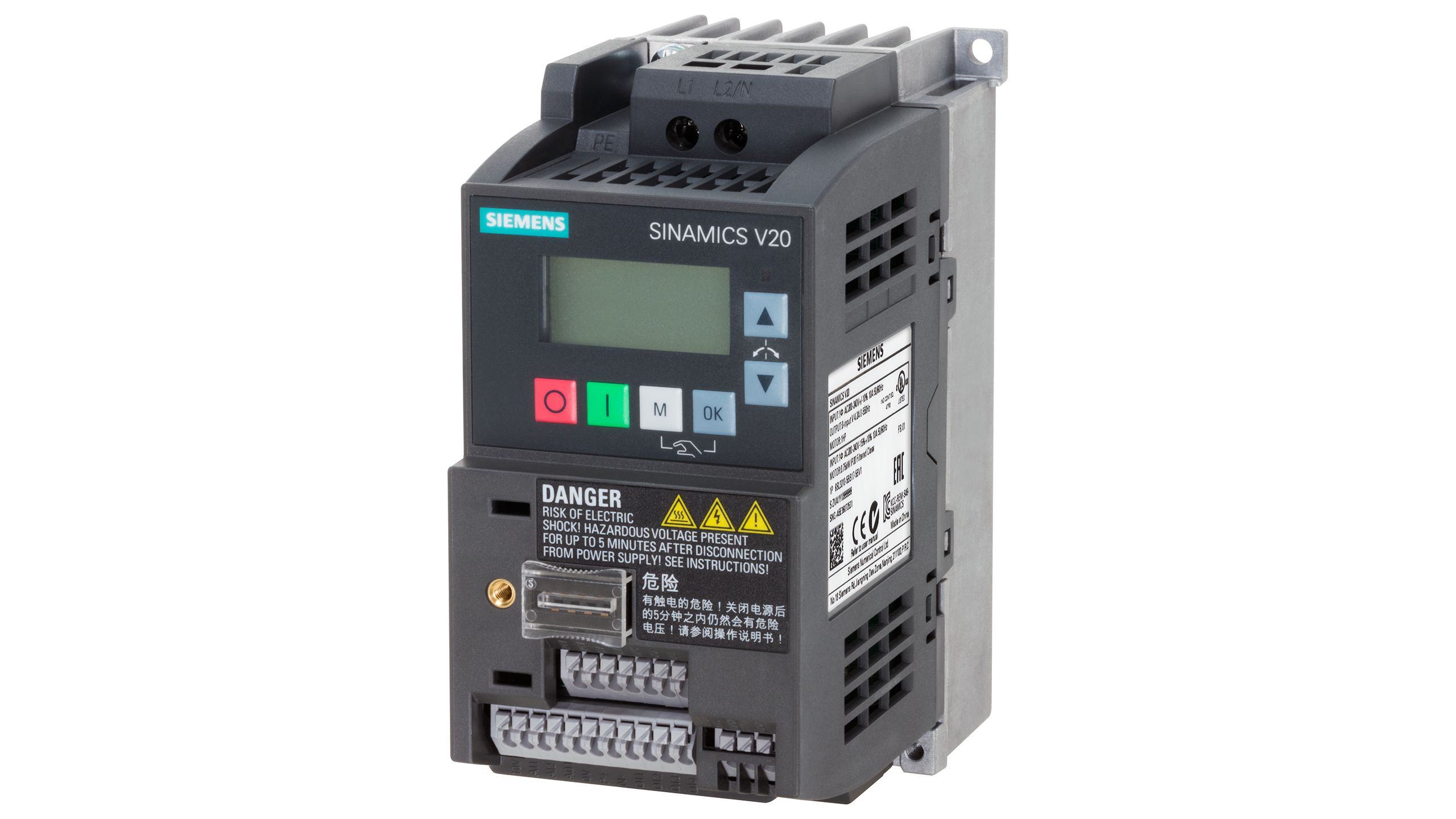 This is SINAMICS V20 Inverter Drive 0.75 kW 1-Phase In 230 V 4.2 A 0 → 550Hz Out USS/Modbus RTU IP20 manufactured by Siemens. The manufacturer part number is 6SL3210-5BB17-5UV1. The product has a current rating of 4.2 a. The product complies with all safety standards, such as ce, c-tick (rcm), culus, en 60204-1, en 61800-3, en 61800-5-1, kcc. The product is available in side by side mount, wall mount configuration. It is IP rated with ip20. The product sinamics v20, is a highly preferred choice for users. It has an overall width of 127.8mm. In has an STO no . The product is highly suitable for ac motors. Features 230 v ac supply voltage. It has an overall length of 68mm. Concerning phase options, it features 1 configuration. Similarly, the product has 142mm of overall depth. Feature 0.75 kw of power rating. It has a/an uss/modbus rtu type bus communication . This product has an output frequency range of 0 → 550hz.