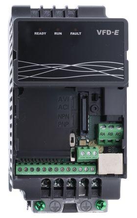 This is VFD-E Inverter Drive 0.5 kW with EMC Filter 0 → 600 Hz Out RS485 ModBus 3-Phase In 460 V 4.3 A IP20 manufactured by Delta. The manufacturer part number is VFD015E43T. The product has a current rating of 4.3 a. It is IP rated with ip20. The product vfd-e, is a highly preferred choice for users. It has an overall width of 72mm. It includes a filter yes . Its typical ambient temperature is approximately -10 → +50°c . It includes a control panel yes . The product is highly suitable for 1.5 kw ac motor. Features 460 v supply voltage. It has an overall length of 142mm. Concerning phase options, it features 3 configuration. Similarly, the product has 152mm of overall depth. Feature 1.5 kw of power rating. It has a/an rs485 modbus type bus communication . This product has an output frequency range of 0 → 600hz.