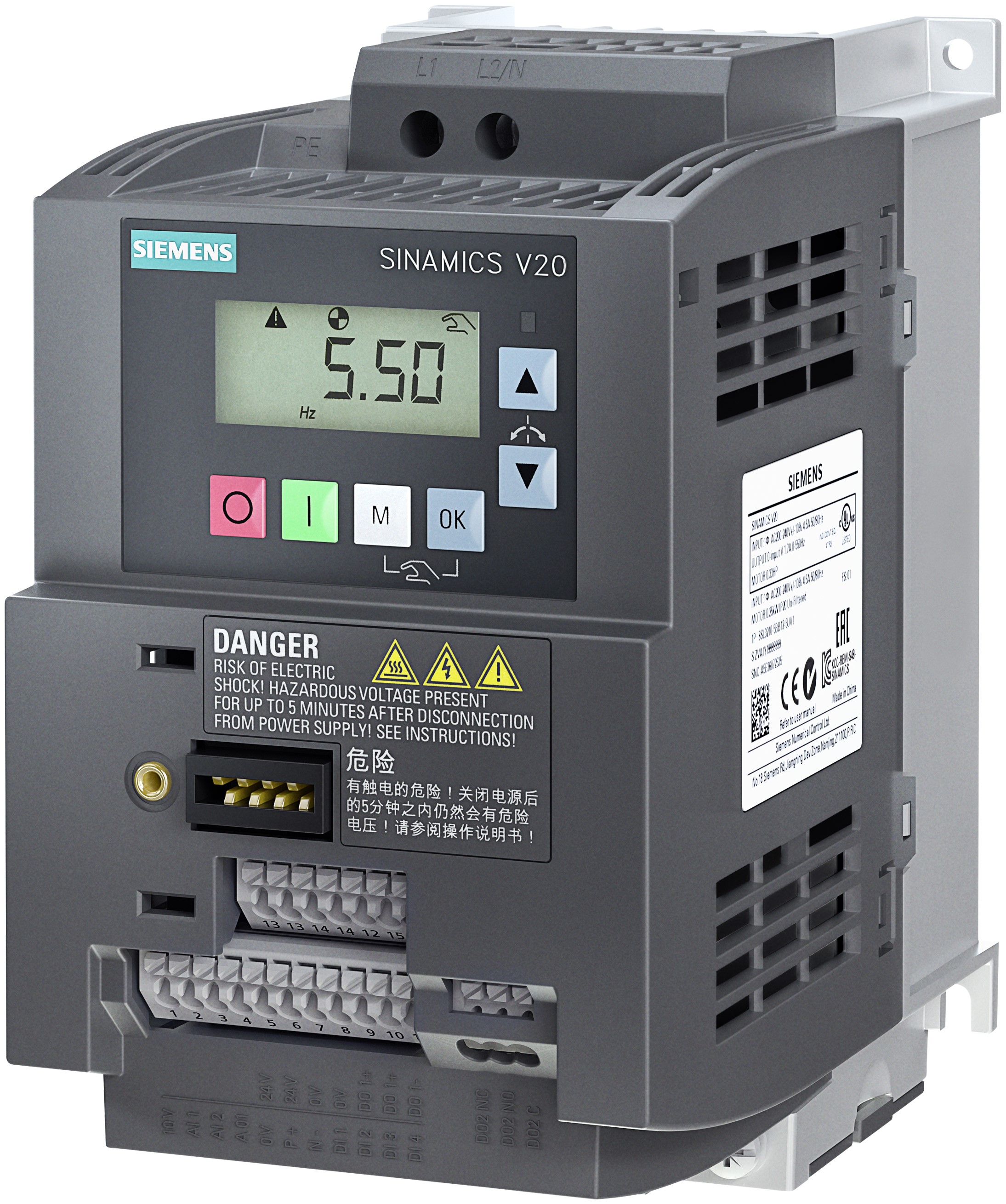 This is Converter 1-Phase In 550Hz Out 1.5 kW 240 V 7.8 A SINAMICS V20 manufactured by Siemens. The manufacturer part number is 6SL3210-5BB21-5UV1. The product has a current rating of 7.8 a. The product complies with all safety standards, such as ce certified, culus. The product is available in side by side mounting, wall mount configuration. It is IP rated with ip20. The product sinamics v20, is a highly preferred choice for users. It has an overall width of 91mm. In has an STO no . The product is highly suitable for sinamics v20. Features 240 v ac supply voltage. It has an overall length of 160.9mm. Concerning phase options, it features 1 configuration. Similarly, the product has 147mm of overall depth. Feature 1.5 kw of power rating. It has a/an modbus rtu, uss type bus communication . This product has an output frequency range of 550hz.