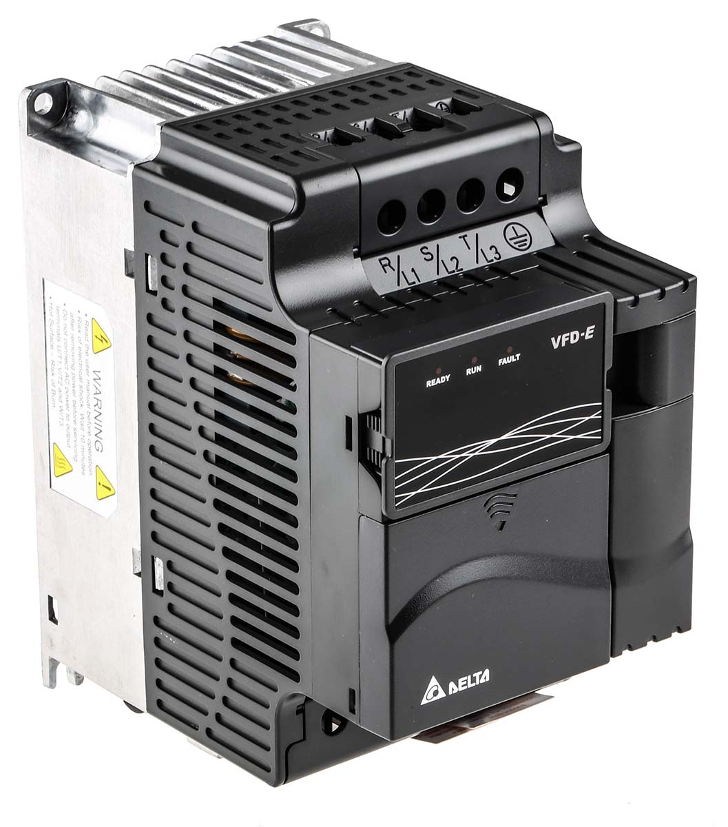 This is VFD-E Inverter Drive 3-Phase In 0 → 600 Hz Out 3.7 kW 460 V ac 11.2 A manufactured by Delta Electronics. The manufacturer part number is VFD037E43A. It is IP rated with ip20. The product vfd-e, is a highly preferred choice for users. The product features a variable frequency drive. Whereas it is comprised of 3 phases. ac motor is the compatible motor type of the product . The product requires a maximum 528v supply voltage . It has a minimum 342v supply voltage . It has a maximum operating temperature of 40°c. This product has an output frequency range of 599hz. Whereas, the minimum operating temperature of the product is -10°c. It has an overall length of 174mm. Similarly, the product has 152 mm of overall depth. Feature 3.7kw of power rating. inverter drive is a versatile product designed to provide user-defined applications. Featuring 8.5a of maximum output current. It has an overall width of 100mm. It has a side type mount .