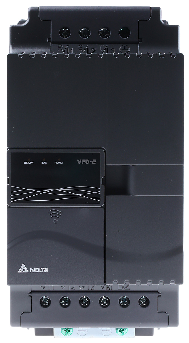 This is VFD-E Inverter Drive 3-Phase In 0 → 600 Hz Out 5.5 kW 460 V ac 14 A manufactured by Delta Electronics. The manufacturer part number is VFD055E43A. The product has a current rating of 14 a. It is IP rated with ip20. The product vfd-e, is a highly preferred choice for users. It has an overall width of 130mm. In has an STO no . It includes a filter yes . It includes a control panel yes . The product is highly suitable for ac motors. Features 460 v ac supply voltage. It has an overall length of 260mm. Concerning phase options, it features 3 configuration. Similarly, the product has 169.2mm of overall depth. Feature 5.5 kw of power rating. It has a/an rs485 modbus type bus communication . This product has an output frequency range of 0 → 599.0hz.