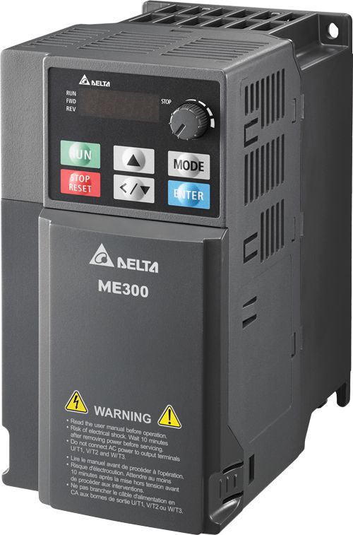 This is VFD-ME Inverter Drive 1-Phase In 0 → 599Hz Out 1.5 kW 230 V 7.5 A manufactured by Delta Electronics. The manufacturer part number is VFD7A5ME21AFSAA. The product has a current rating of 7.5 a. It is IP rated with ip20. The product vfd-me, is a highly preferred choice for users. It has a/an modbus rs485 type bus communication . Features 230 v supply voltage. Concerning phase options, it features 1 configuration. Feature 1.5 kw of power rating. This product has an output frequency range of 0 → 599hz.