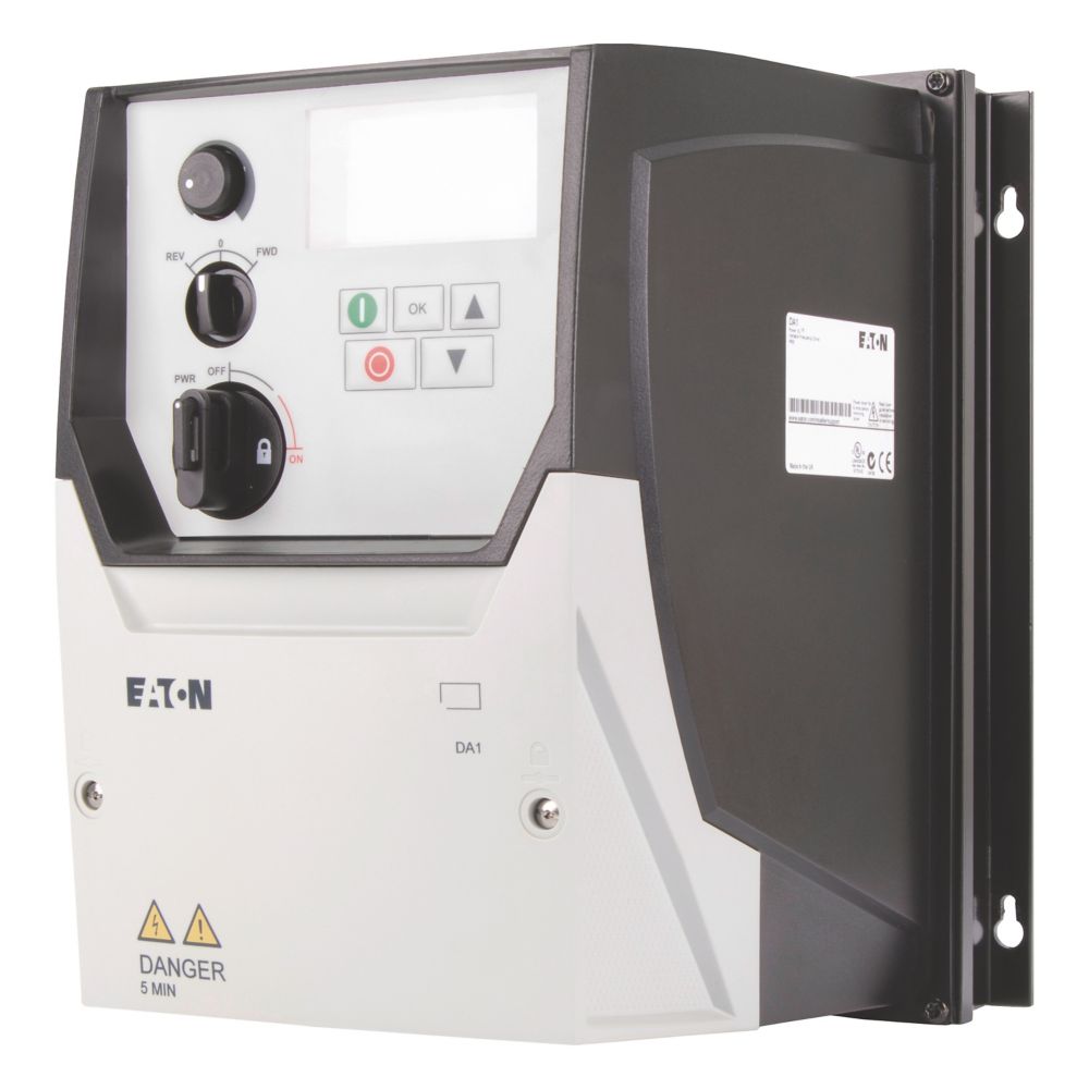 This is Inverter Module 2.2 kW 3 Phase 400 V 5.8 A DA1 Series manufactured by Eaton. The manufacturer part number is 169383 DA1-345D8FB-B6SC. The product has a current rating of 5.8 a. The product da1, is a highly preferred choice for users. The product is highly suitable for branch circuits. Features 400 v supply voltage. Concerning phase options, it features 3 configuration. Feature 2.2 kw of power rating.