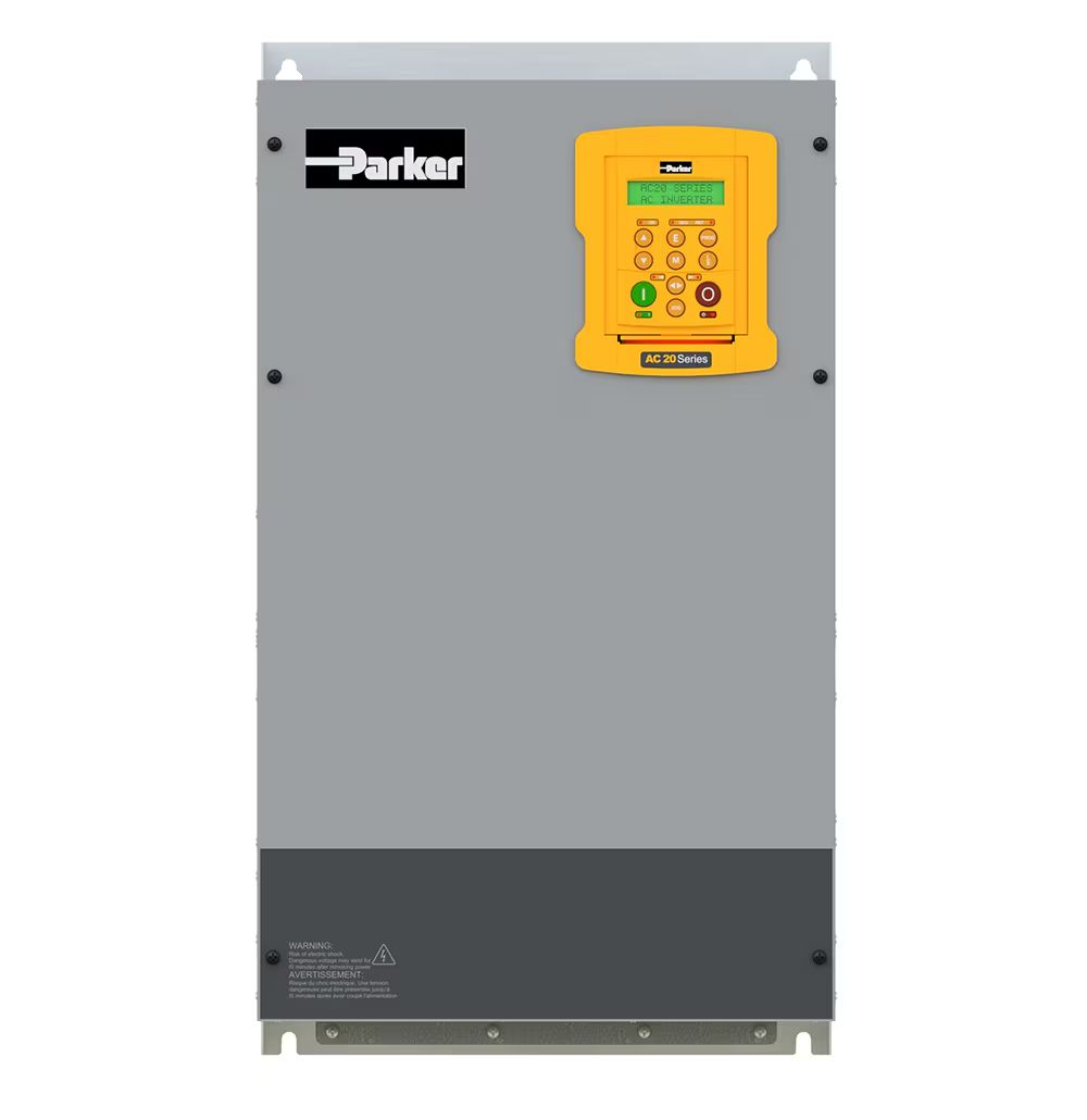 This is Variable Speed Drive 55 kW 3 Phase 380 → 480 V ac 110 A AC20 Series manufactured by Parker. The manufacturer part number is 20G-47-1100-BF. The product has a current rating of 110 a. The product complies with all safety standards, such as ce, rohs compliant, ul listed. It is IP rated with ip20. The product ac20, is a highly preferred choice for users. The product features a ac drive. A bespoke product is ethernet tcp/ip interface. Features 380 → 480 v ac supply voltage. The product is highly suitable for induction and permanent magnet ac motors. It has an overall length of 630mm. Concerning phase options, it features 3 configuration. Similarly, the product has 265mm of overall depth. Feature 55 kw of power rating. It has an overall width of 355mm.