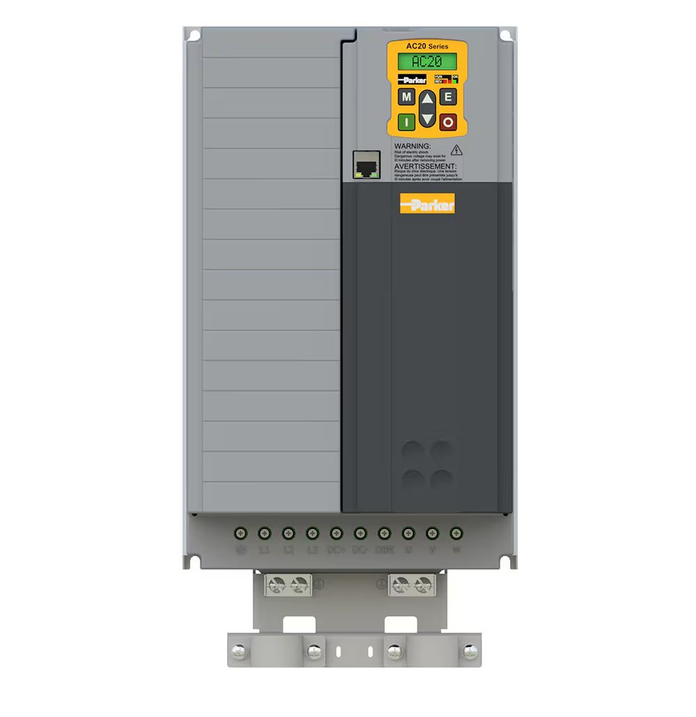 This is Variable Speed Drive 30 kW 3 Phase 380 → 480 V ac 60 A AC20 Series manufactured by Parker. The manufacturer part number is 20G-45-0600-BF. The product has a current rating of 60 a. The product complies with all safety standards, such as ce, rohs compliant, ul listed. It is IP rated with ip20. The product ac20, is a highly preferred choice for users. The product features a ac drive. A bespoke product is profinet interface. Features 380 → 480 v ac supply voltage. The product is highly suitable for induction and permanent magnet ac motors. It has an overall length of 401.4mm. Concerning phase options, it features 3 configuration. Similarly, the product has 220.2mm of overall depth. Feature 30 kw of power rating. It has an overall width of 210mm.