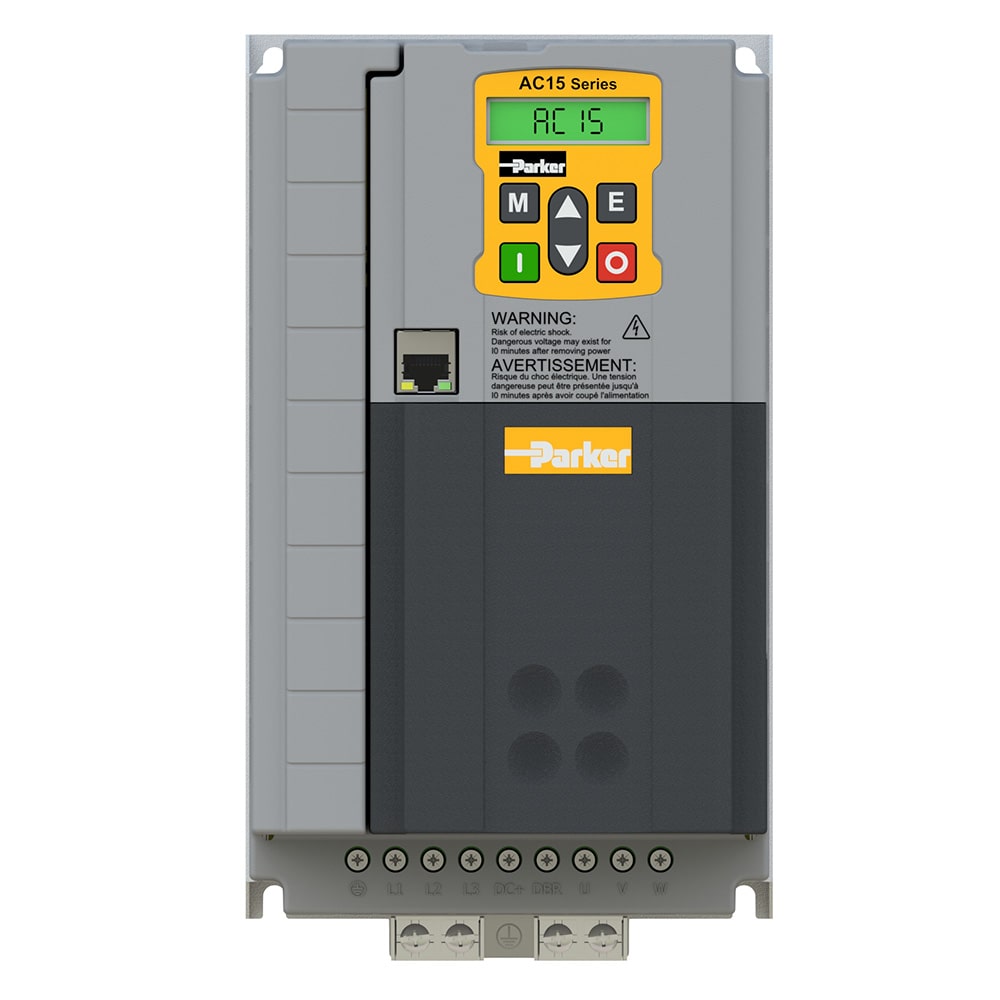 This is Variable Speed Drive 7.5 kW 3 Phase 480 V ac 17 A AC15 Series manufactured by Parker. The manufacturer part number is 15G-43-0170-BF. The product has a current rating of 17 a. The product complies with all safety standards, such as ce, rohs compliant, ul listed. It is IP rated with ip20. The product ac15, is a highly preferred choice for users. The product features a ac drive. A bespoke product is ethernet/ip interface. Features 480 v ac supply voltage. The product is highly suitable for induction and permanent magnet ac motors. It has an overall length of 237.5mm. Concerning phase options, it features 3 configuration. Similarly, the product has 184mm of overall depth. Feature 7.5 kw of power rating. It has an overall width of 141.6mm.