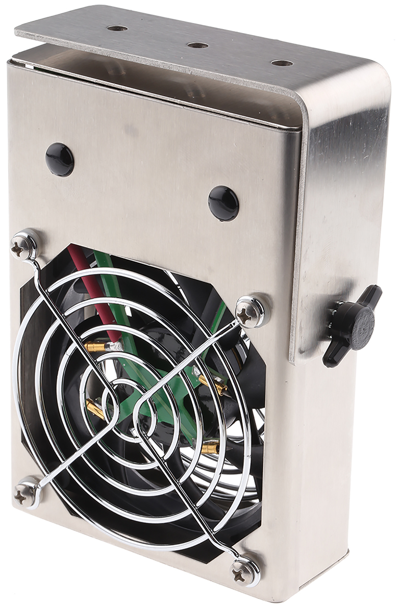 This is 24V dc 2 Fan Bench Top Ioniser manufactured by Desco Europe. The manufacturer part number is 50642. Its offset voltage is approximately 5 → 25v . The plug is a highly reliable euro plug, uk, usa with long service life. In addition, the height is 140mm. Furthermore, the product is 90mm wide. The product comes in 40mm depth. It has a 56 → 86m³/h air flow rate. Features 24v supply voltage. It contains 2 fan(s) . It has a hand switch type activation . It comes in bench top configuration. The product complies with EN 61340-5-1 standard yes .