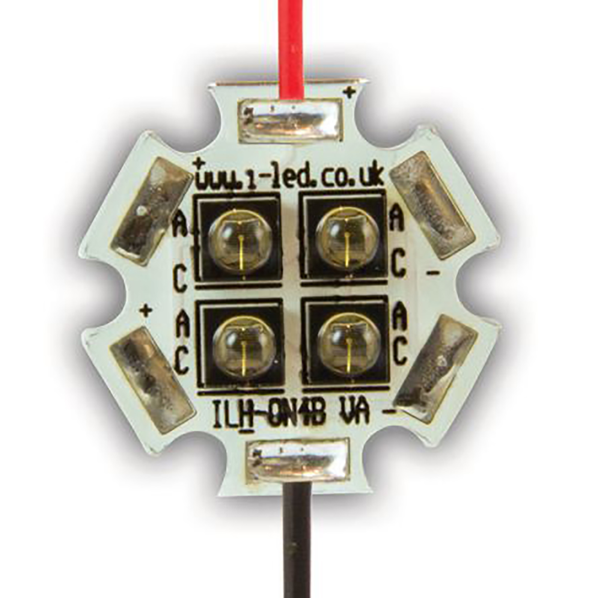 This is 4 IR 850nm OSLON Black Star manufactured by Intelligent LED Solutions. The manufacturer part number is ILH-IN04-85NL-SC201-WIR200.. The given dimensions of the product include 20 x 20 x 4.2mm. The product is available in surface mount configuration. The product oslon black 4 powerstar ir, is a highly preferred choice for users. It has a ±25 (50)° angle of half intensity . The product requires a maximum 9.2v supply voltage . It is comprised of 2 pins. It consists of 1 LEDs. Whereas, its peak wavelength is 850nm .