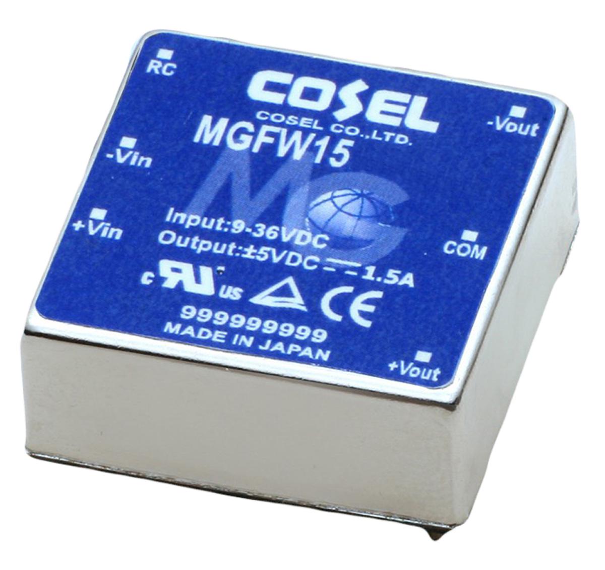 This is Through Hole 15W Isolated DC-DC Converter Vin 9 → 36 V dc I/O isolation 1500V Vout ±15 (30)V manufactured by Cosel. The manufacturer part number is MGFW152415. Additionally, the product is supplied with 2 outputs. Load Regulation - 750mv. It has 1.5kv dc isolation voltage. It carries 500ma output current. The product is available in through hole configuration. The product has +85°c maximum temperature. While its minimum temperature is -40°c. It has 9 → 36 v dc of input voltage range. Its accurate length is 25.4mm. It is a highly efficient product with an 89% of high efficiency. The product comes in 9.9mm depth. Features a ±15v dc output voltage. It has 9 → 36 v dc of nominal input voltage. Feature 15w of power rating.