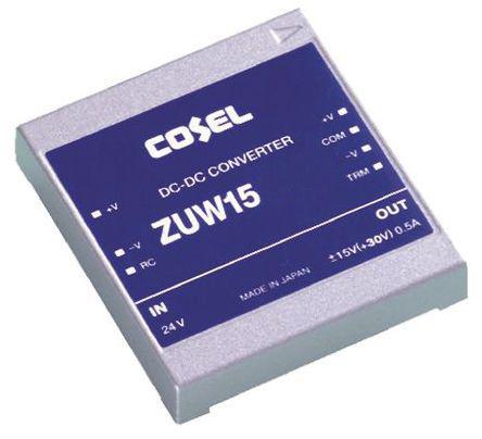 This is 15.6W Isolated DC-DC Converter Through Hole Vin 18 → 36 V dc Vout ±12V dc I/O isolation 500V ac manufactured by Cosel. The manufacturer part number is ZUW152412. Additionally, the product is supplied with 2 outputs. It has 500v ac isolation voltage. It carries 650ma output current. The product is available in through hole configuration. The product has +71°c maximum temperature. While its minimum temperature is -20°c. It has 18 → 36 v dc of input voltage range. Its accurate length is 50mm. The product comes in 8.5mm depth. Features a ±12v dc output voltage. It has 24 v dc of nominal input voltage. Feature 15.6w of power rating.