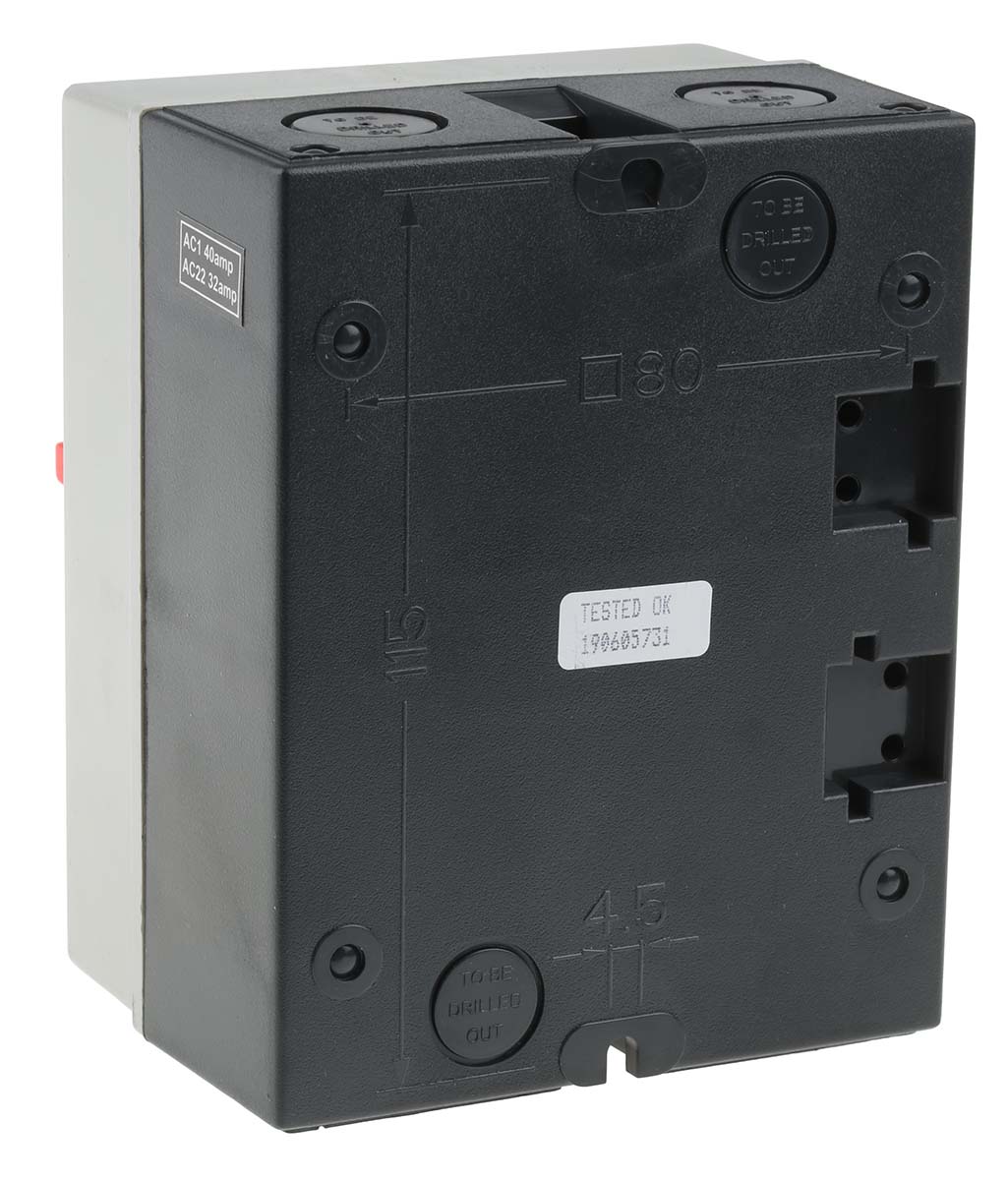 This is 4 Pole DIN Rail Non Fused Isolator Switch 40 A 15 kW IP65 manufactured by RS Pro. The manufacturer part number is 466-239. It also carries 40a maximum current. Moreover, it is designed with 30ka switch rating . The product is available in din rail configuration. It is IP rated with ip65. It accepts padlocks yes . It has a maximum operating temperature of +80°c. Moreover, the product has a nominal 690v ac voltage rating. Its accurate length is 125mm. Furthermore, the product is 100mm wide. The product comes in 70mm depth. Whereas, the minimum operating temperature of the product is -25°c. Its electrical phase configuration includes 3. Feature 15kw of power rating. It has equipped with 4p poles. The terminal is a wire lead type. Its handle is of red colour .