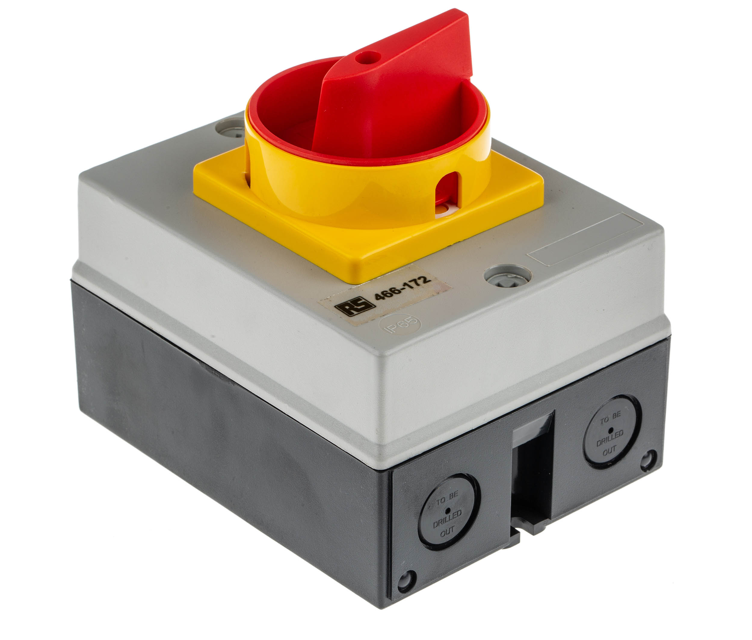 This is 3 Pole DIN Rail Non Fused Isolator Switch 32 A 11 kW IP65 manufactured by RS Pro. The manufacturer part number is 466-172. It also carries 32a maximum current. Moreover, it is designed with 30ka switch rating . The product is available in din rail configuration. It is IP rated with ip65. It accepts padlocks yes . It has a maximum operating temperature of +80°c. Moreover, the product has a nominal 690v ac voltage rating. Its accurate length is 125mm. Furthermore, the product is 100mm wide. The product comes in 70mm depth. It has auxiliary available contacts yes . Whereas, the minimum operating temperature of the product is -25°c. Its electrical phase configuration includes 3. Feature 11kw of power rating. It has equipped with 3p poles. The terminal is a wire lead type. Its handle is of red colour .