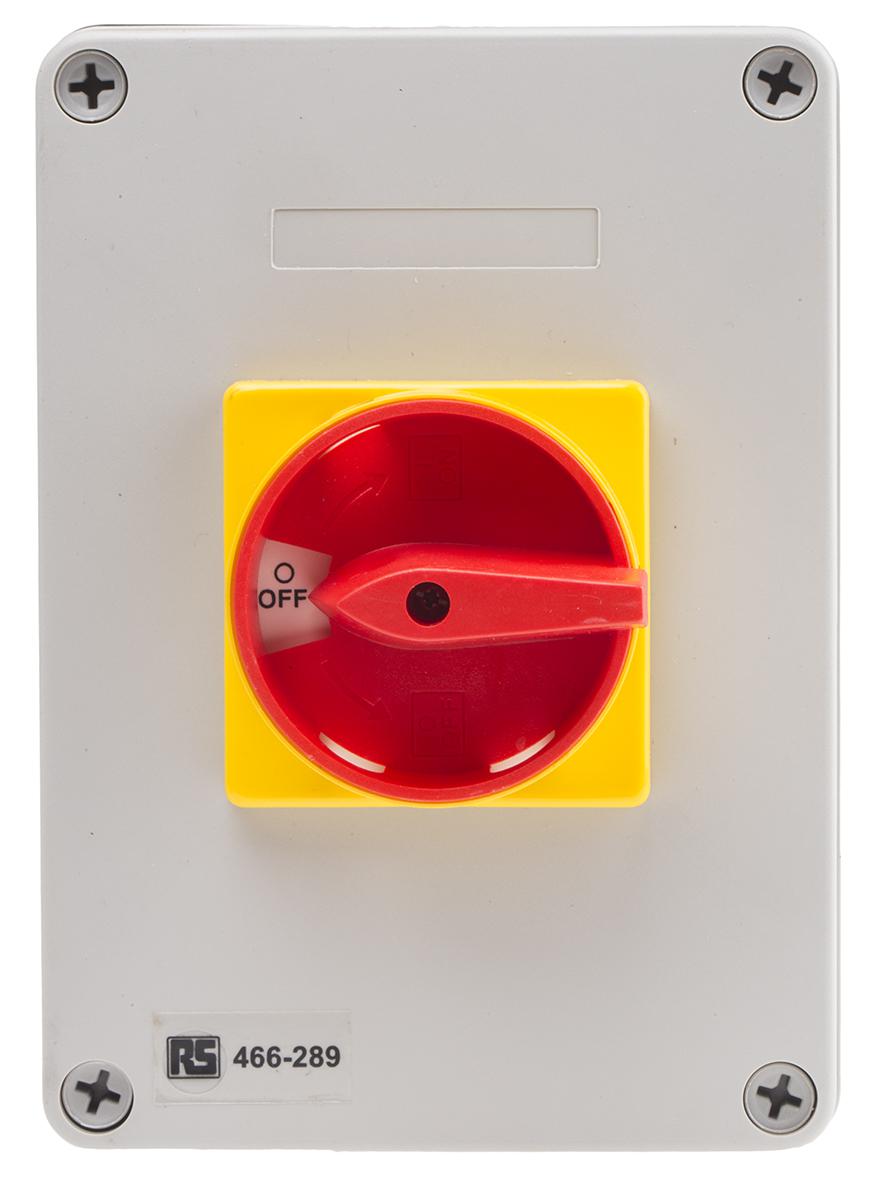 This is 3 Pole DIN Rail Non Fused Isolator Switch 80 A 30 kW IP65 manufactured by RS Pro. The manufacturer part number is 466-289. It also carries 80a maximum current. Moreover, it is designed with 30ka switch rating . The product is available in din rail configuration. It is IP rated with ip65. It accepts padlocks yes . It has a maximum operating temperature of +80°c. Moreover, the product has a nominal 690v ac voltage rating. Its accurate length is 175mm. Furthermore, the product is 125mm wide. The product comes in 90mm depth. Whereas, the minimum operating temperature of the product is -25°c. Its electrical phase configuration includes 3. Feature 30kw of power rating. It has equipped with 3p poles. The terminal is a wire lead type. Its handle is of red colour .