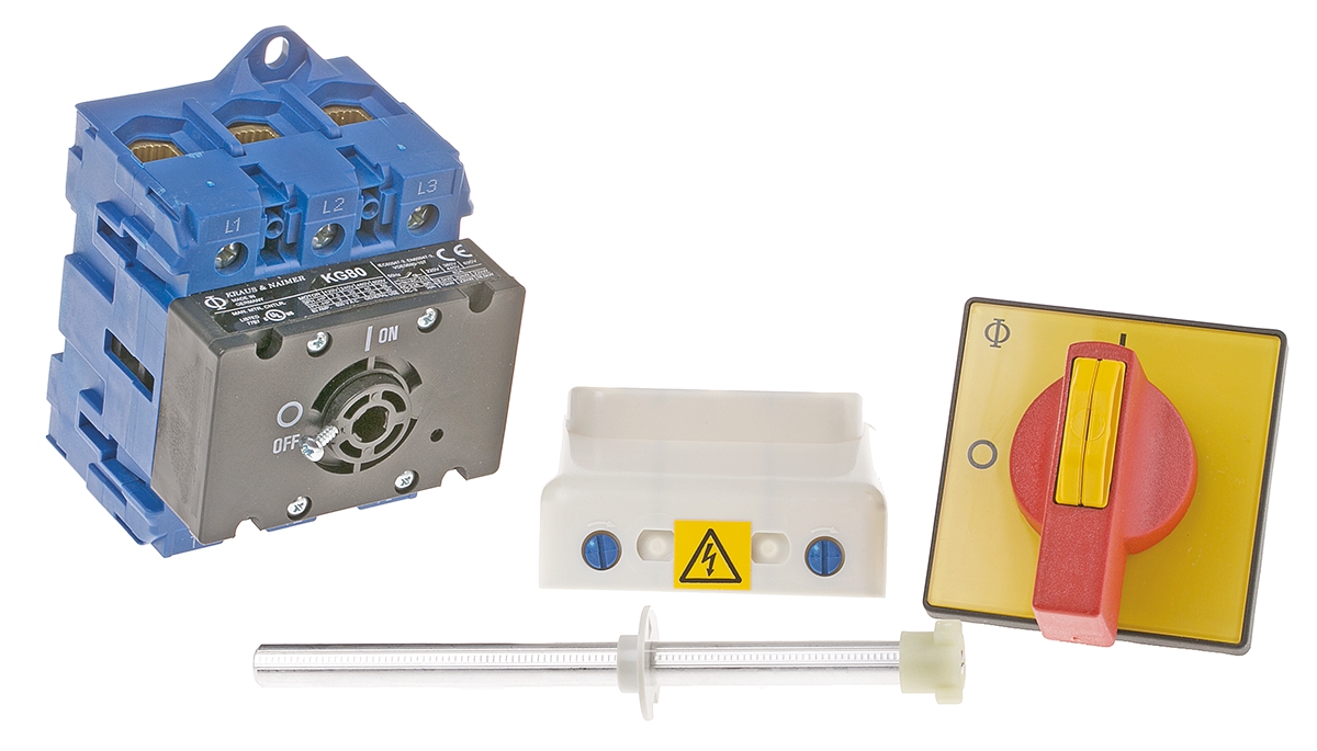 This is 3 Pole DIN Rail Non Fused Isolator Switch 80 A 30 kW IP65 manufactured by Kraus & Naimer. The manufacturer part number is KG80 T203/GBA282 VE. It also carries 80a maximum current. It is IP rated with ip65. It accepts padlocks yes . It has a maximum operating temperature of +55°c. Moreover, the product has a nominal 690v ac voltage rating. Its accurate length is 70mm. Furthermore, the product is 80mm wide. The product comes in 68mm depth. It has auxiliary available contacts yes . Its electrical phase configuration includes 3. Feature 30kw of power rating. It has equipped with 3p poles. The terminal is a wire lead type.