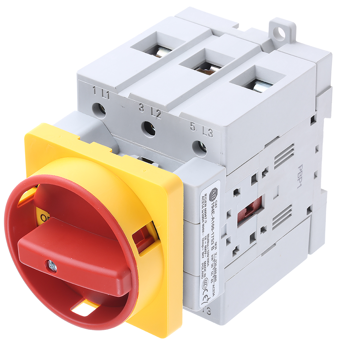 Switch Disconnectors (Base Mounting) The switches fully conform to IEC204, VDE 0660 and IEC947 and are UL,CSA approved. Manufactured from thermo-resistant and self-extinguishing materials (UL94-VØ) which are free from Cadmium, Halogen and Asbestos Insulation Voltage Ui 690 690 690 690 690 690 Thermal Current Ith 30 40 50 75 100 120 Rated Current Ie 25 32 40 63 80 100 Operating temp. °C -20/+55 -20/+55 -20/+55 -20/+55 -20/+60 -20/+60 Max.Cable size mm 16 16 25 25 50 50 Motor Rating AC3 (kW) 7.5 11 15 18.5 30 37 Motor Rating AC23A (kW) 11 15 18.5 22 37 45 Allen Bradley MCS Range The 194E switch disconnector range forms part of the Modular Control System (MCS) 9mm grid system and similarly features compact design, modularity and extensive choice, all switch materials can be recycled. Universal terminal screws are fitted for Pozidriv or flat blade screwdriver. The switching category is AC23A.
