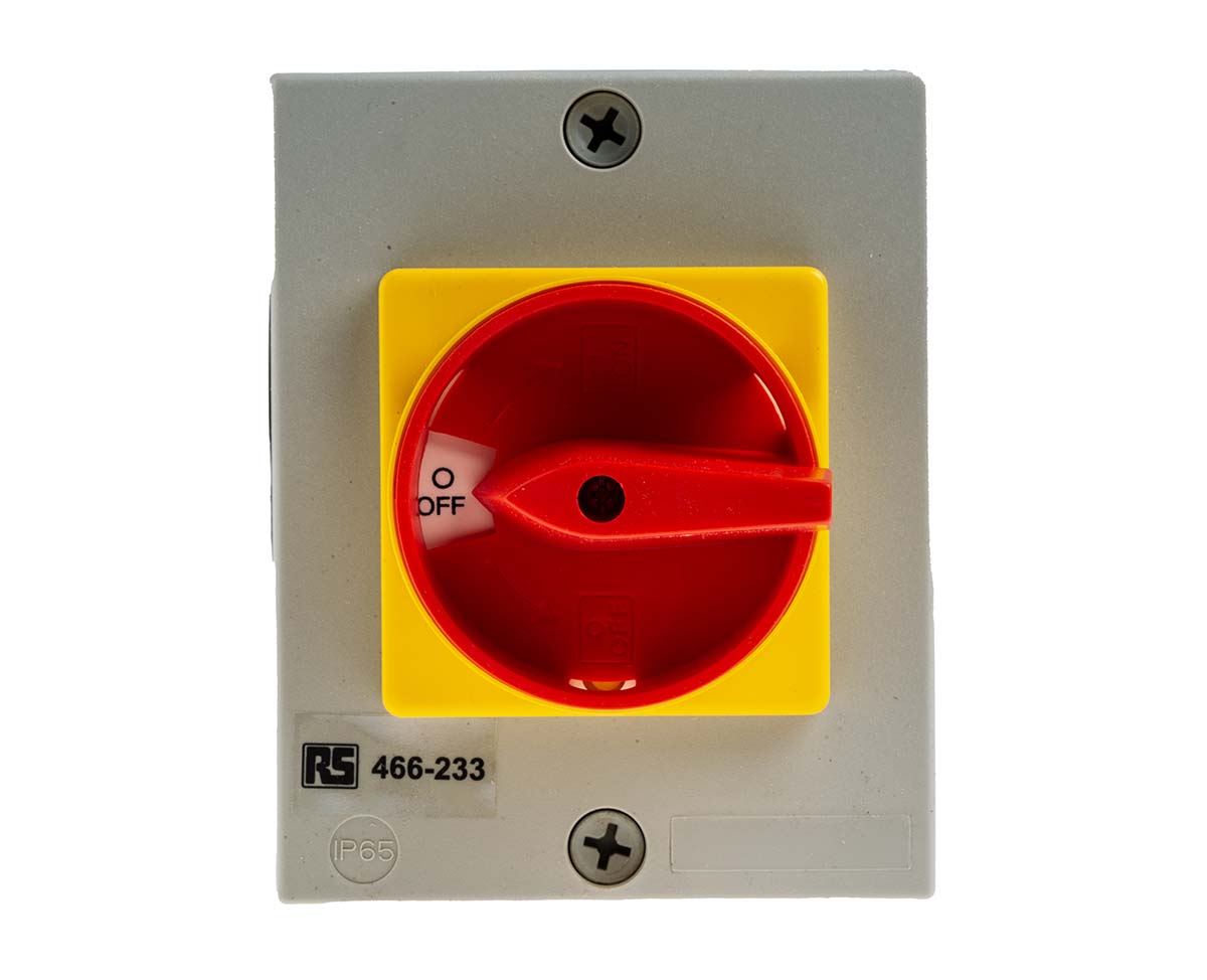 This is 4 Pole DIN Rail Non Fused Isolator Switch 25 A 11 kW IP65 manufactured by RS Pro. The manufacturer part number is 466-233. It also carries 25a maximum current. Moreover, it is designed with 5ka switch rating . The product is available in din rail configuration. It is IP rated with ip65. It accepts padlocks yes . It has a maximum operating temperature of +80°c. Moreover, the product has a nominal 690v ac voltage rating. Its accurate length is 125mm. Furthermore, the product is 100mm wide. The product comes in 70mm depth. Whereas, the minimum operating temperature of the product is -25°c. Its electrical phase configuration includes 3. Feature 11kw of power rating. It has equipped with 4p poles. The terminal is a wire lead type. Its handle is of red colour .