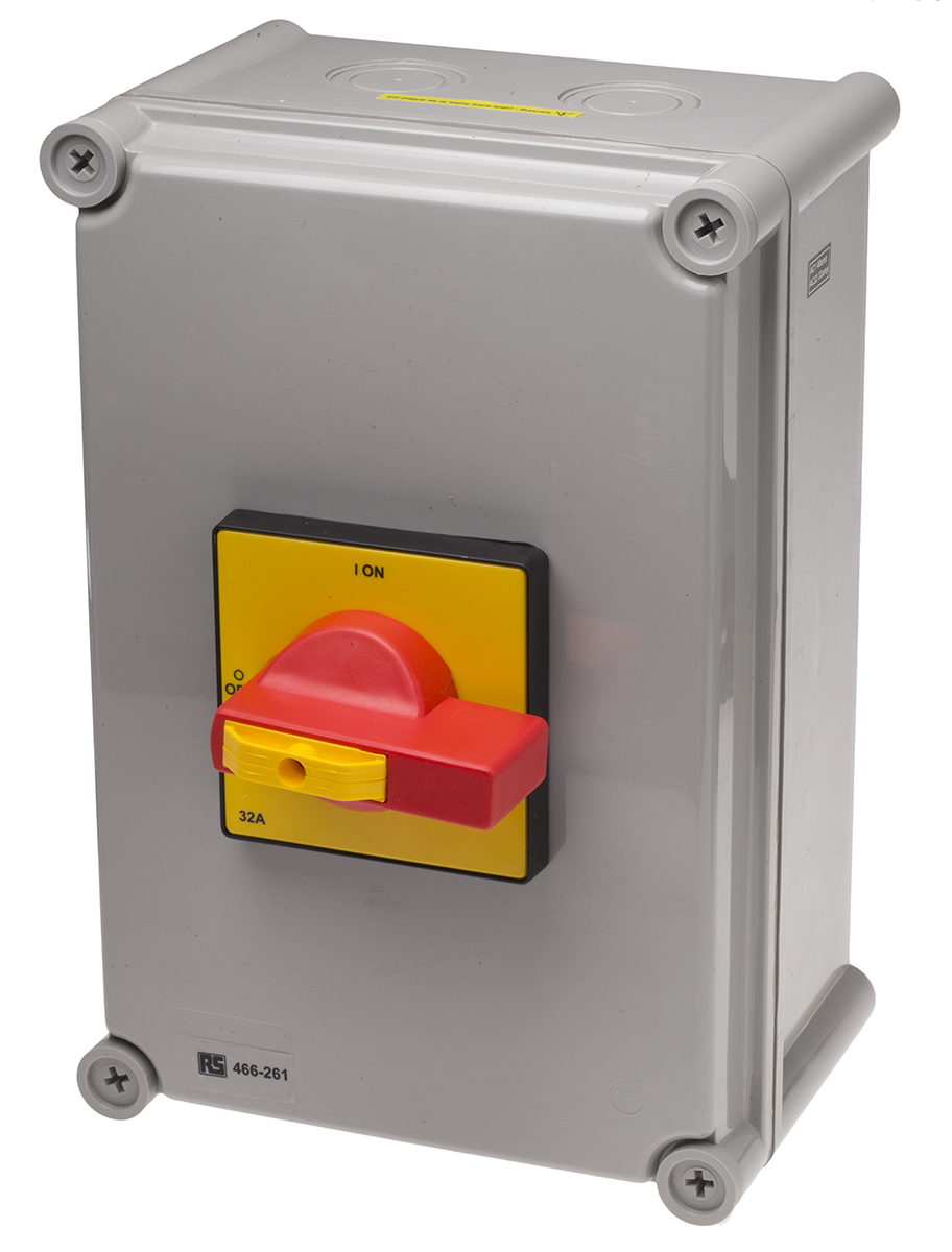 This is 6 Pole DIN Rail Non Fused Isolator Switch 32 A 11 kW IP65 manufactured by RS Pro. The manufacturer part number is 466-261. It also carries 32a maximum current. Moreover, it is designed with 30ka switch rating . The product is available in din rail configuration. It is IP rated with ip65. It accepts padlocks yes . It has a maximum operating temperature of +80°c. Moreover, the product has a nominal 690v ac voltage rating. Its accurate length is 280mm. Furthermore, the product is 190mm wide. The product comes in 130mm depth. Whereas, the minimum operating temperature of the product is -25°c. Feature 11kw of power rating. It has equipped with 6p poles. The terminal is a wire lead type. Its handle is of red colour .