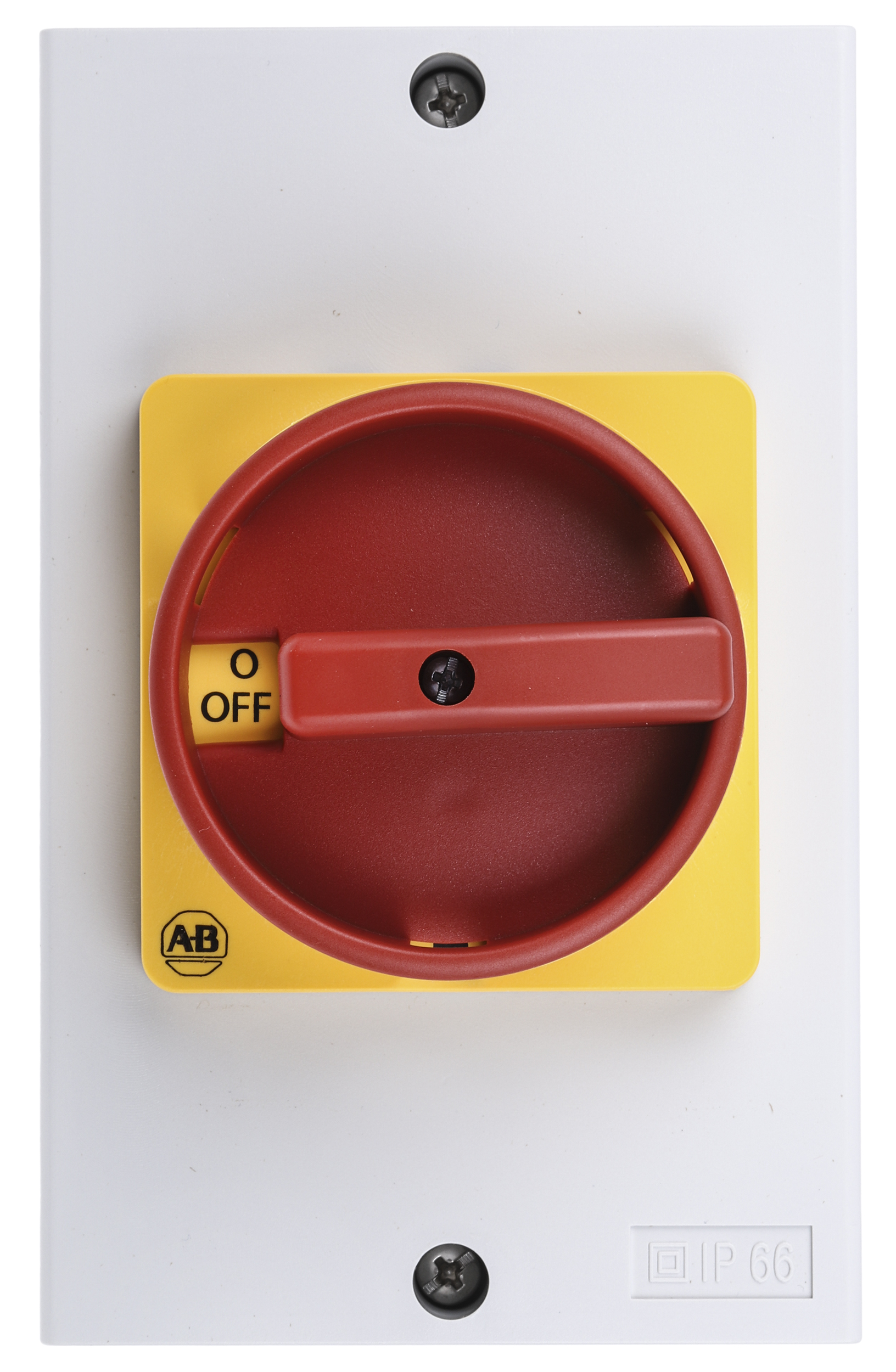 This is 3 Pole Enclosed Non Fused Isolator Switch 32 A 15 kW IP66 manufactured by Allen Bradley. The manufacturer part number is 194E-Y32-1753-6N. It also carries 32a maximum current. Moreover, it is designed with 15ka switch rating . The product is available in din rail configuration. It is IP rated with ip66. It accepts padlocks yes . It has a maximum operating temperature of +60°c. Moreover, the product has a nominal 690v ac voltage rating. Its accurate length is 150mm. Furthermore, the product is 95mm wide. The product comes in 86mm depth. Whereas, the minimum operating temperature of the product is -25°c. Its electrical phase configuration includes 3. Feature 15kw of power rating. It has equipped with 3p poles. The terminal is a wire lead type. Its handle is of black/grey, red/yellow colour .