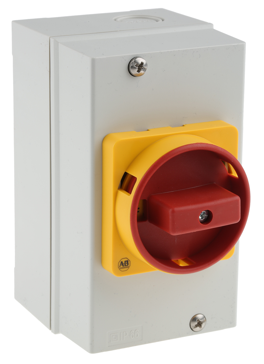 This is 3 Pole Enclosed Non Fused Isolator Switch 16 A 7.5 kW IP66 manufactured by Allen Bradley. The manufacturer part number is 194E-Y16M-1753-4N. It also carries 16a maximum current. Moreover, it is designed with 20ka switch rating . It is IP rated with ip66. It accepts padlocks yes . It has a maximum operating temperature of +60°c. Moreover, the product has a nominal 690v ac voltage rating. Its accurate length is 120mm. Furthermore, the product is 70mm wide. The product comes in 70mm depth. Whereas, the minimum operating temperature of the product is -25°c. Its electrical phase configuration includes 3. Feature 7.5kw of power rating. It has equipped with 3p poles. The terminal is a wire lead type. Its handle is of black/grey, red/yellow colour .