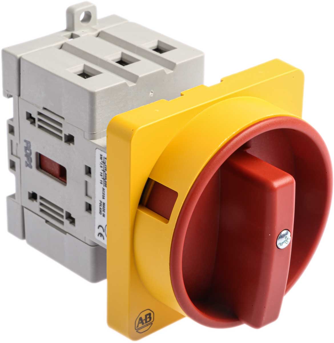 This is 3 Pole Panel Mount Non Fused Isolator Switch 25 A 11 kW IP66 manufactured by Allen Bradley. The manufacturer part number is 194E-E25-1753-6N. It also carries 25a maximum current. Moreover, it is designed with 20ka switch rating . The product is available in panel mount configuration. It is IP rated with ip66. It accepts padlocks yes . It has a maximum operating temperature of +60°c. Moreover, the product has a nominal 690v ac voltage rating. Its accurate length is 90mm. Furthermore, the product is 45mm wide. The product comes in 60mm depth. Whereas, the minimum operating temperature of the product is -25°c. Its electrical phase configuration includes 3. Feature 11kw of power rating. It has equipped with 3p poles. The terminal is a wire lead type. Its handle is of black/grey, red/yellow colour .