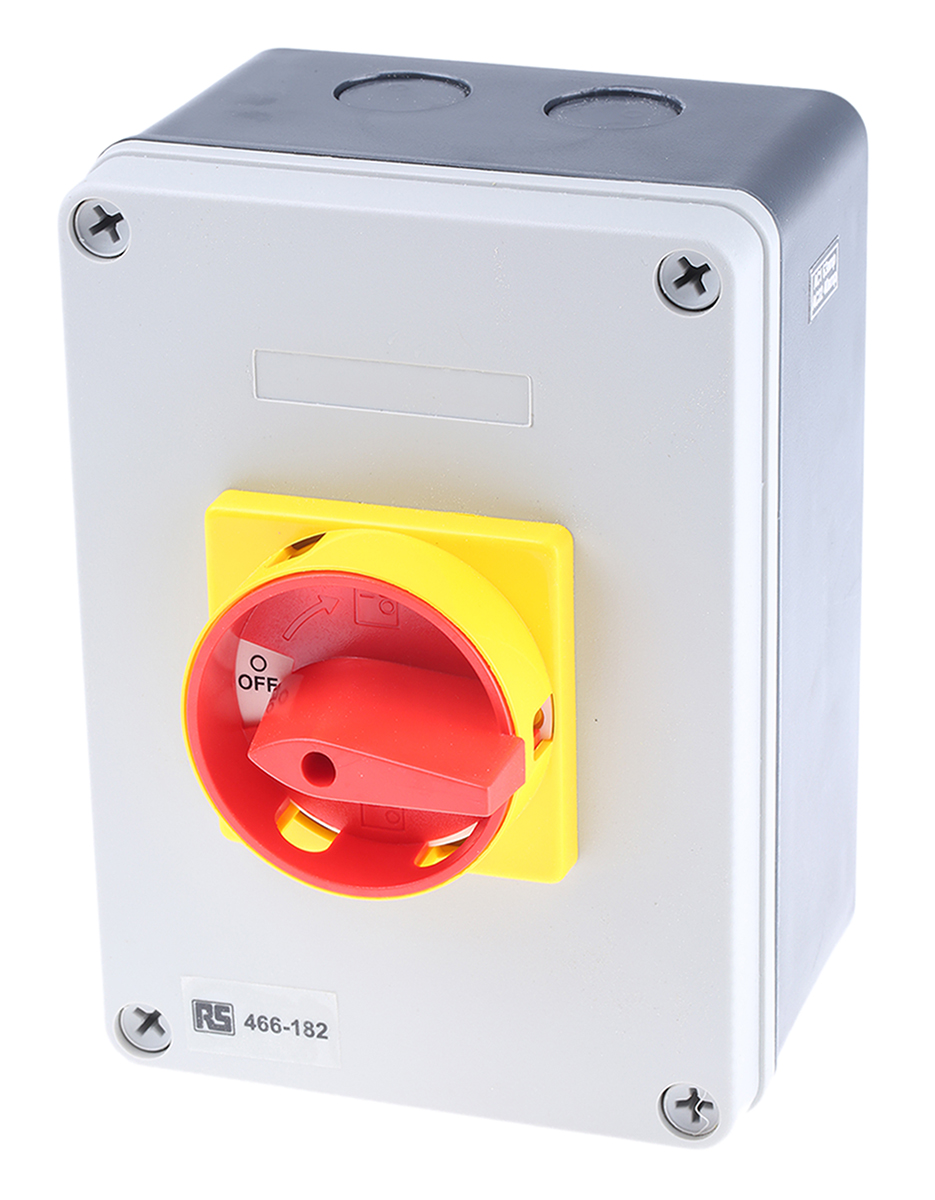 This is 3 Pole DIN Rail Non Fused Isolator Switch 63 A 22 kW IP65 manufactured by RS Pro. The manufacturer part number is 466-182. It also carries 63a maximum current. Moreover, it is designed with 30ka switch rating . The product is available in din rail configuration. It is IP rated with ip65. It accepts padlocks yes . It has a maximum operating temperature of +80°c. Moreover, the product has a nominal 690v ac voltage rating. Its accurate length is 175mm. Furthermore, the product is 125mm wide. The product comes in 90mm depth. It has auxiliary available contacts yes . Whereas, the minimum operating temperature of the product is -25°c. Its electrical phase configuration includes 3. Feature 22kw of power rating. It has equipped with 3p poles. The terminal is a wire lead type. Its handle is of red colour .