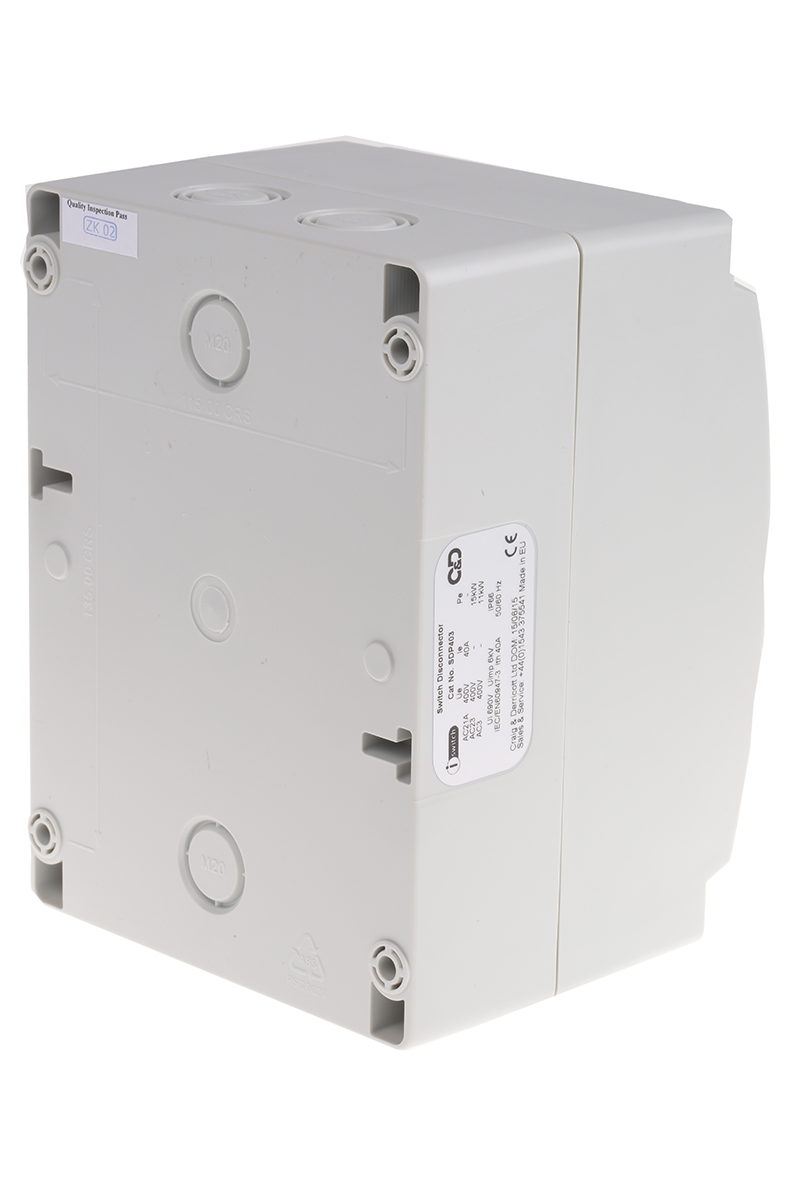 The Craig & Derricott SDP403‑RS offers UK-based professionals a robust, reliable solution for safe isolation of three-phase electrical systems. Rated at 40 A and capable of switching up to 15 kW, this high-impact polycarbonate switch-disconnector operates up to 690 V and features a 6 kV insulation rating. Its IP65 enclosure ensures protection against dust ingress and water jets, making it suitable for demanding indoor or outdoor locations. With a pad-lockable red handle and screw-terminals for simple wiring, the SDP403‑RS delivers dependable performance for industrial, commercial, and maintenance environments across the UK power infrastructure market.