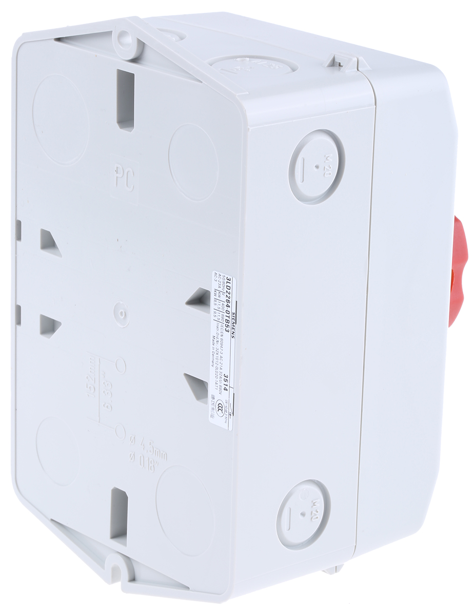 The Siemens 3LD2264-0TB53 is a premium quality, 3 pole enclosed non-fused isolator switch designed for reliable and efficient electrical circuit isolation. Boasting a current rating of 32 A and a powerful motor capacity of 11.5 kW, this switch ensures optimal performance in a variety of settings. Encased in a robust IP65-rated enclosure, it offers excellent safety against dust and water ingress, making it suitable for challenging environmental conditions. This Siemens isolator switch exemplifies engineering excellence, combining robustness, safety, and versatility, making it a top choice for professionals seeking reliable electrical isolation solutions.