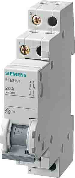 This is 1 Pole DIN Rail Non Fused Isolator Switch - 20A Maximum Current manufactured by Siemens. The manufacturer part number is 5TE8162. It also carries 20a maximum current. The product is available in din rail configuration. The product 5te, is a highly preferred choice for users. It has a model number 5te. It features sentron range. The normal state configuration includes 2co. It has equipped with 1p poles.