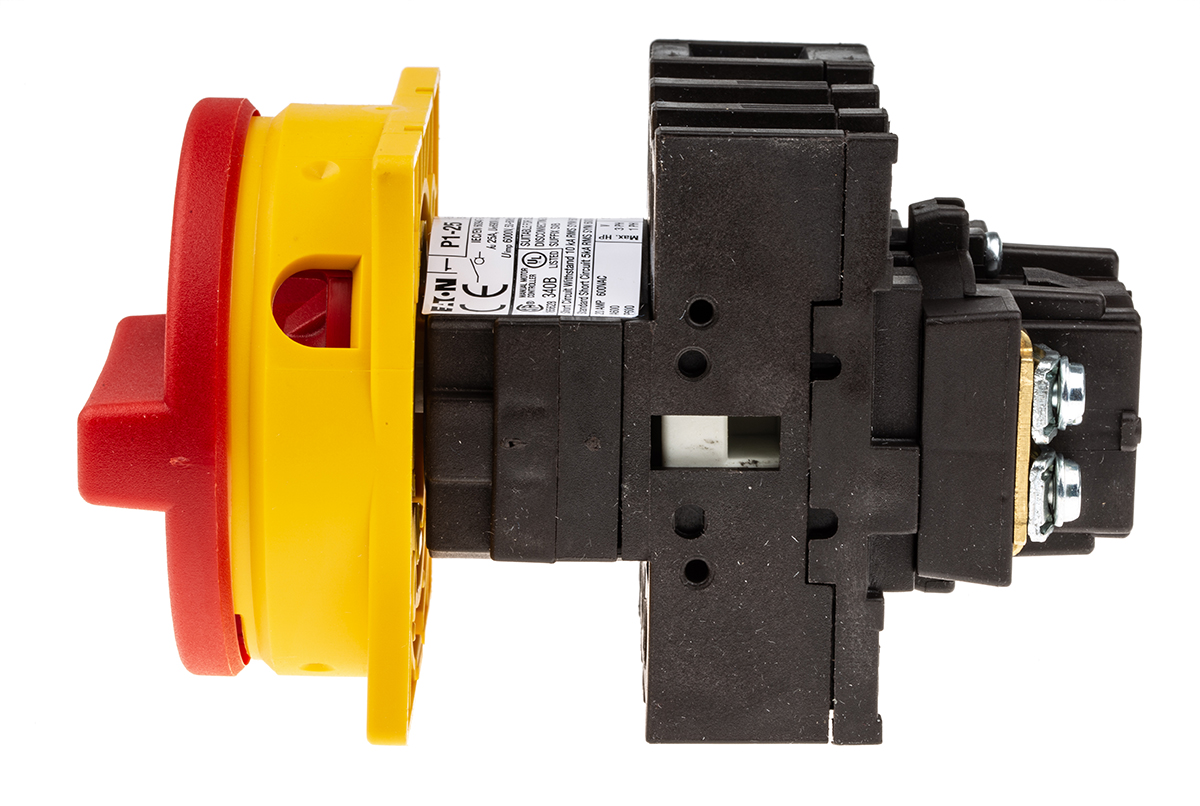This is 3 + N Pole Panel Mount Non-Fused Switch Disconnector - 25A Maximum Current 13kW Power Rating IP65 manufactured by Eaton. The manufacturer part number is 081587 P1-25/EA/SVB/N. It also carries 25a maximum current. Moreover, it is designed with 190a switch rating . The product is available in panel mount configuration. It is IP rated with ip65. It accepts padlocks yes . It has a maximum operating temperature of +50°c. Whereas, the minimum operating temperature of the product is -25°c. Moreover, the product has a nominal 690v voltage rating. Its accurate length is 48mm. In addition, it has a single throw configuration . Furthermore, the product is 99mm wide. The product comes in 65mm depth. Its electrical phase configuration includes 1, 3. The normal state configuration includes 3no. Feature 13kw of power rating. It has equipped with 3p+n poles. The terminal is a screw type. Its handle is of red colour .