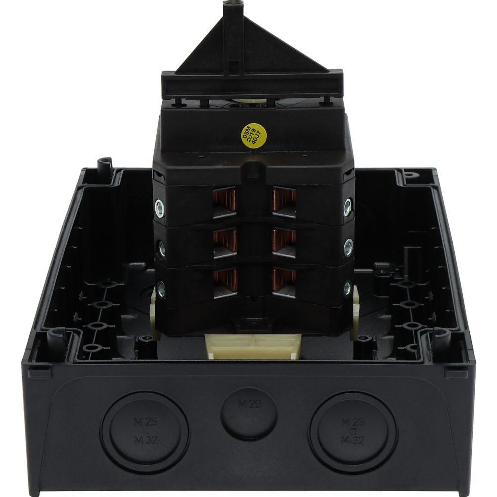 This is 6 Pole Non-Fused Switch Disconnector - 63A Maximum Current 22kW Power Rating IP65 manufactured by Eaton. The manufacturer part number is 207242 T5B-3-8342/I4/SVB. It also carries 63a maximum current. Moreover, it is designed with 5ka switch rating . The product is available in surface mount configuration. It is IP rated with ip65. It accepts padlocks yes . It has a maximum operating temperature of +50°c. Whereas, the minimum operating temperature of the product is -25°c. Moreover, the product has a nominal 690v voltage rating. Its accurate length is 160mm. In addition, it has a single throw configuration . Furthermore, the product is 204mm wide. The product comes in 240mm depth. Its electrical phase configuration includes 1, 3. The normal state configuration includes 6no. Feature 22kw of power rating. It has equipped with 6p poles. The terminal is a screw type. Its handle is of red colour .