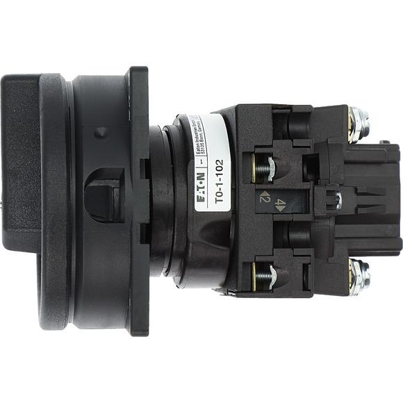 This is 2 Pole Flush Mount Non-Fused Switch Disconnector - 20A Maximum Current 5.5kW Power Rating IP65 manufactured by Eaton. The manufacturer part number is 093451 T0-1-102/EA/SVB-SW. It also carries 20a maximum current. Moreover, it is designed with 320a switch rating . The product is available in flush mount configuration. It is IP rated with ip65. It accepts padlocks yes . The product eaton moeller, is a highly preferred choice for users. Moreover, the product has a nominal 690v ac voltage rating. Its accurate length is 65mm. Furthermore, the product is 106mm wide. The product comes in 45mm depth. Whereas, the minimum operating temperature of the product is -25°c. Its electrical phase configuration includes 1, 3. Feature 5.5kw of power rating. It has equipped with 2p poles. The terminal is a screw type. Its handle is of black colour .