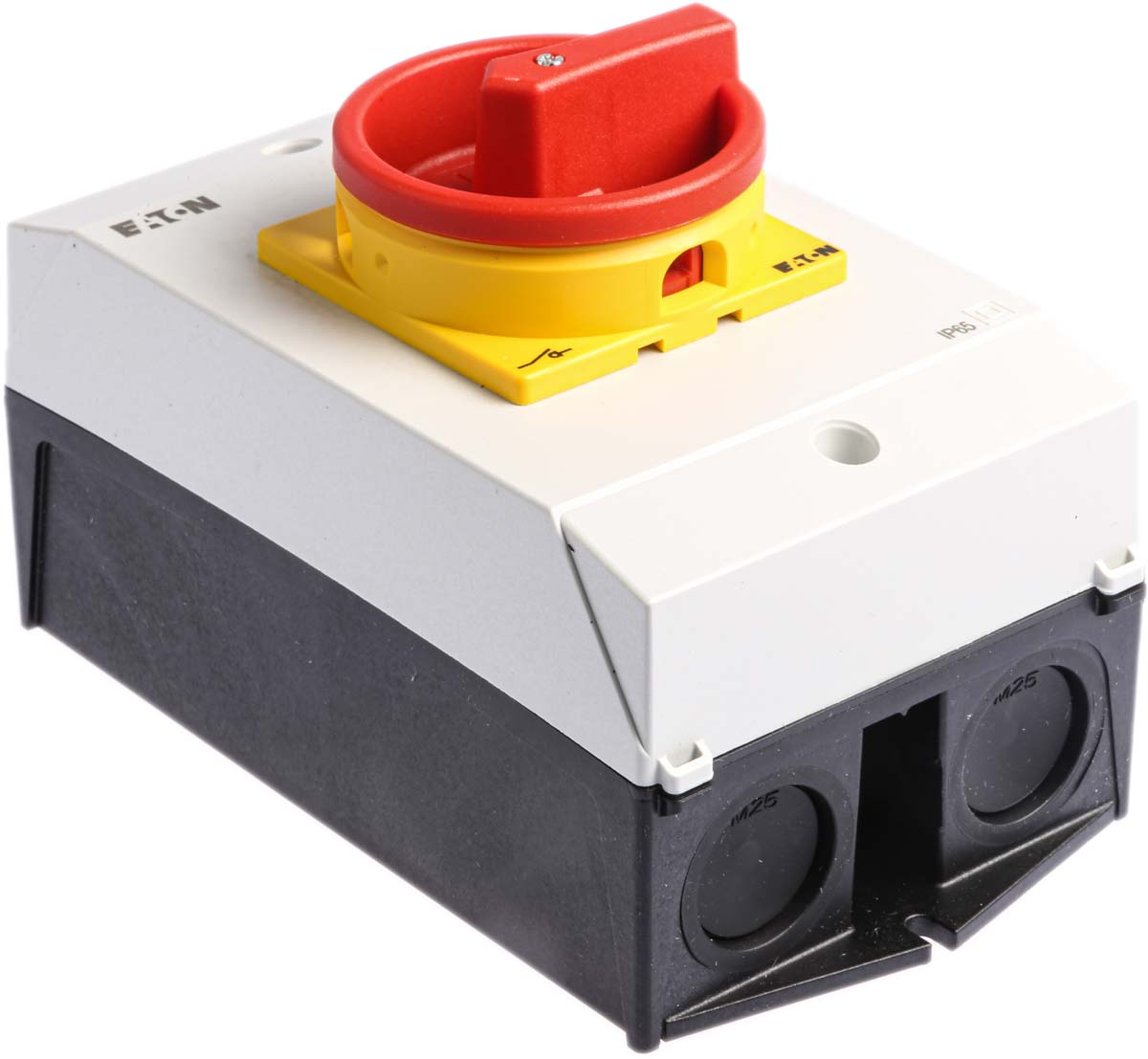 This is 3 Pole Non-Fused Switch Disconnector - 32A Maximum Current 15kW Power Rating IP65 manufactured by Eaton. The manufacturer part number is 207314 P1-32/I2/SVB. It also carries 32a maximum current. Moreover, it is designed with 640a switch rating . The product is available in surface mount configuration. It is IP rated with ip65. It accepts padlocks yes . It has a maximum operating temperature of +50°c. Whereas, the minimum operating temperature of the product is -25°c. Moreover, the product has a nominal 415v ac voltage rating. Its accurate length is 160mm. It has a model number 207314. Furthermore, the product is 100mm wide. The product comes in 80mm depth. It has auxiliary available contacts yes . Its electrical phase configuration includes 3. The normal state configuration includes no. Feature 15kw of power rating. It has equipped with 3p poles. The terminal is a screw type. Its handle is of red colour .
