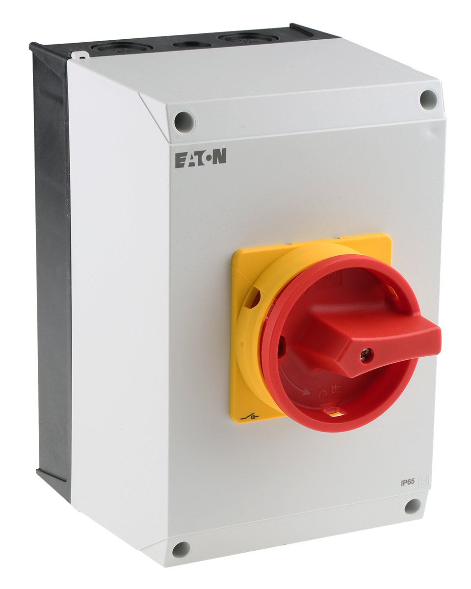 This is 6 Pole Non-Fused Switch Disconnector - 63A Maximum Current 22kW Power Rating IP65 manufactured by Eaton. The manufacturer part number is 207246 T5B-4-15682/I4/SVB. It also carries 63a maximum current. Moreover, it is designed with 1300a switch rating . The product is available in surface mount configuration. It is IP rated with ip65. It accepts padlocks yes . It has a maximum operating temperature of +50°c. Whereas, the minimum operating temperature of the product is -25°c. Moreover, the product has a nominal 415v ac voltage rating. Its accurate length is 240mm. In addition, it has a single throw configuration . Furthermore, the product is 160mm wide. The product comes in 125mm depth. It has auxiliary available contacts yes . The normal state configuration includes no. Feature 22kw of power rating. It has equipped with 6p poles. The terminal is a screw type. Its handle is of red colour .