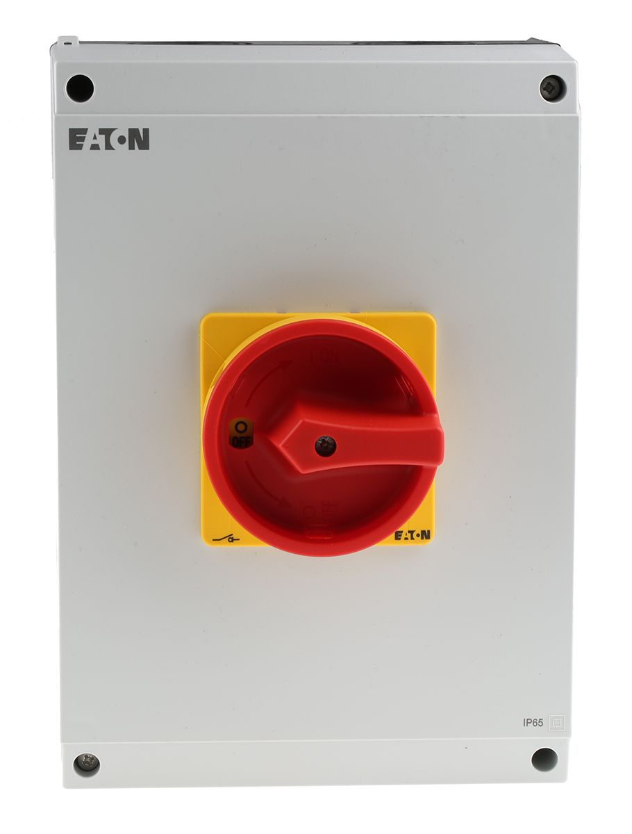 This is 6 Pole Surface Mount Non-Fused Switch Disconnector - 100A Maximum Current 30kW Power Rating IP65 manufactured by Eaton. The manufacturer part number is 207281 T5-4-15682/I5/SVB. It also carries 100a maximum current. Moreover, it is designed with 1850a switch rating . The product is available in surface mount configuration. It is IP rated with ip65. It accepts padlocks yes . It has a maximum operating temperature of +40°c. Whereas, the minimum operating temperature of the product is -25°c. Moreover, the product has a nominal 415v ac voltage rating. Its accurate length is 280mm. In addition, it has a single throw configuration . Furthermore, the product is 200mm wide. The product comes in 125mm depth. It has auxiliary available contacts yes . The normal state configuration includes no. Feature 30kw of power rating. It has equipped with 6p poles. The terminal is a screw type. Its handle is of red colour .