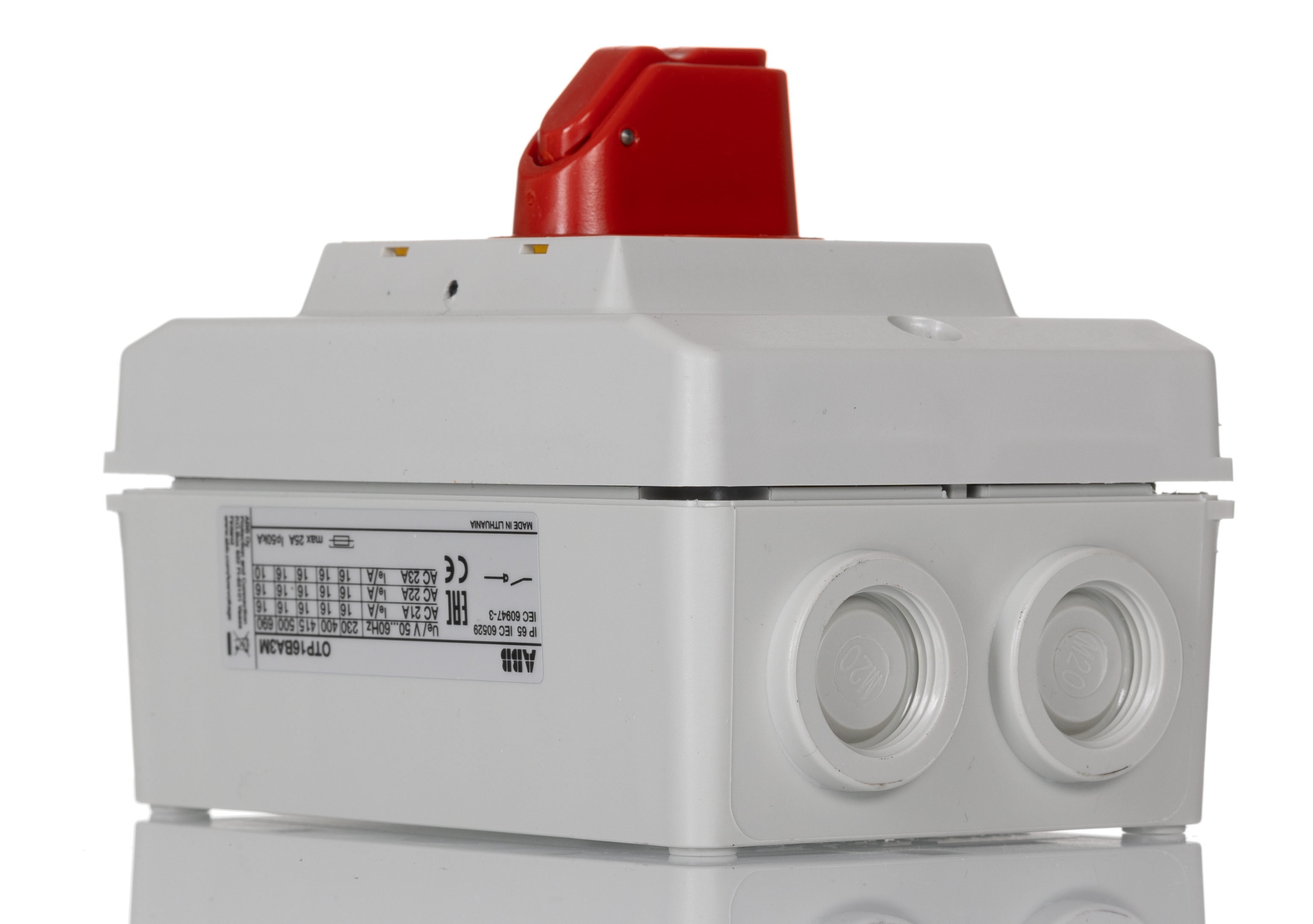 This is OT Pole Switch Disconnector - 16A Maximum Current IP65 manufactured by ABB. The manufacturer part number is 1SCA022401R3350 OTP16BA3M. The product is enclosed . It also carries 16a maximum current. It is IP rated with ip65. It accepts padlocks yes . The product ot, is a highly preferred choice for users. Moreover, the product has a nominal 690v ac voltage rating. Its accurate length is 60mm. It has a model number otp16ba3m. Furthermore, the product is 85mm wide. The product comes in 120mm depth. The normal state configuration includes 1no/1nc. Feature 7.5kw of power rating. It has equipped with 3 poles. Its handle is of red/yellow colour .