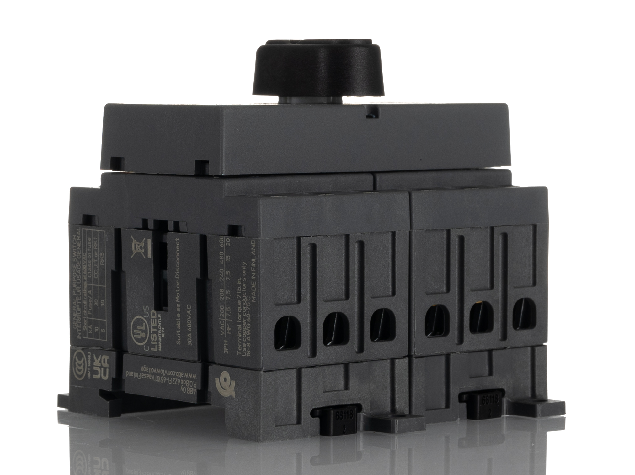 This is OT Pole Base Mounting Changeover Switch - 25A Maximum Current 9kW Power Rating IP20 manufactured by ABB. The manufacturer part number is 1SCA104863R1001 OT25F3C. The product is enclosed . It also carries 25a maximum current. The product is available in base mounting configuration. It is IP rated with ip20. The product ot, is a highly preferred choice for users. Moreover, the product has a nominal 690v ac voltage rating. Its accurate length is 68mm. It has a model number ot25f3c. Furthermore, the product is 55mm wide. The product comes in 68mm depth. Feature 9kw of power rating. It has equipped with 3 poles. Its handle is of black colour .