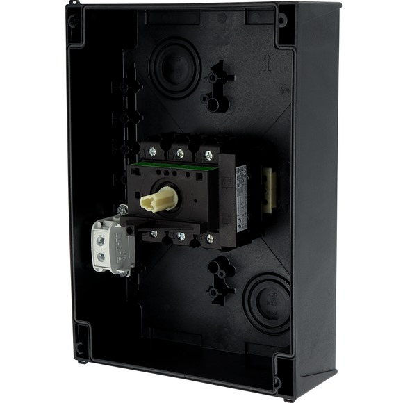 This is 3 Pole Surface Mount Isolator Switch - 100A Maximum Current 55kW Power Rating IP65 manufactured by Eaton. The manufacturer part number is 207375 P3-100/I5/SVB-SW/HI11. It also carries 100a maximum current. Moreover, it is designed with 760a switch rating . The product is available in surface mount configuration. It is IP rated with ip65. Whereas, the minimum operating temperature of the product is -25°c. The product is enclosed . Moreover, the product has a nominal 690v ac voltage rating. Its accurate length is 169mm. It has a model number p3-100. Furthermore, the product is 200mm wide. The product comes in 280mm depth. It has auxiliary available contacts yes . The normal state configuration includes 1no/1nc. Its electrical phase configuration includes 1, 3. It features p3 range. Feature 55kw of power rating. It has a maximum operating temperature of +40°c. It has equipped with 3 poles. The terminal is a screw type. Its handle is of black colour .